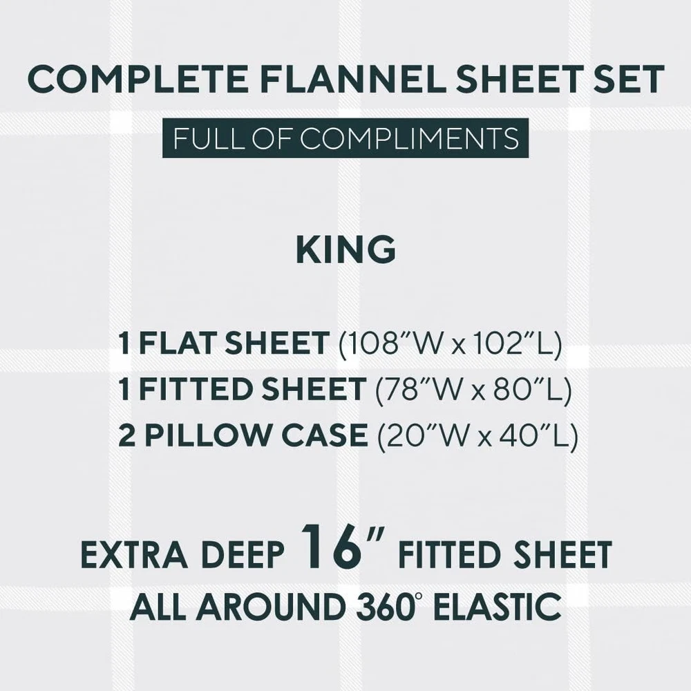 Elegant King Cotton Flannel Bedding - Double Brushed Sheets with Pillowcases