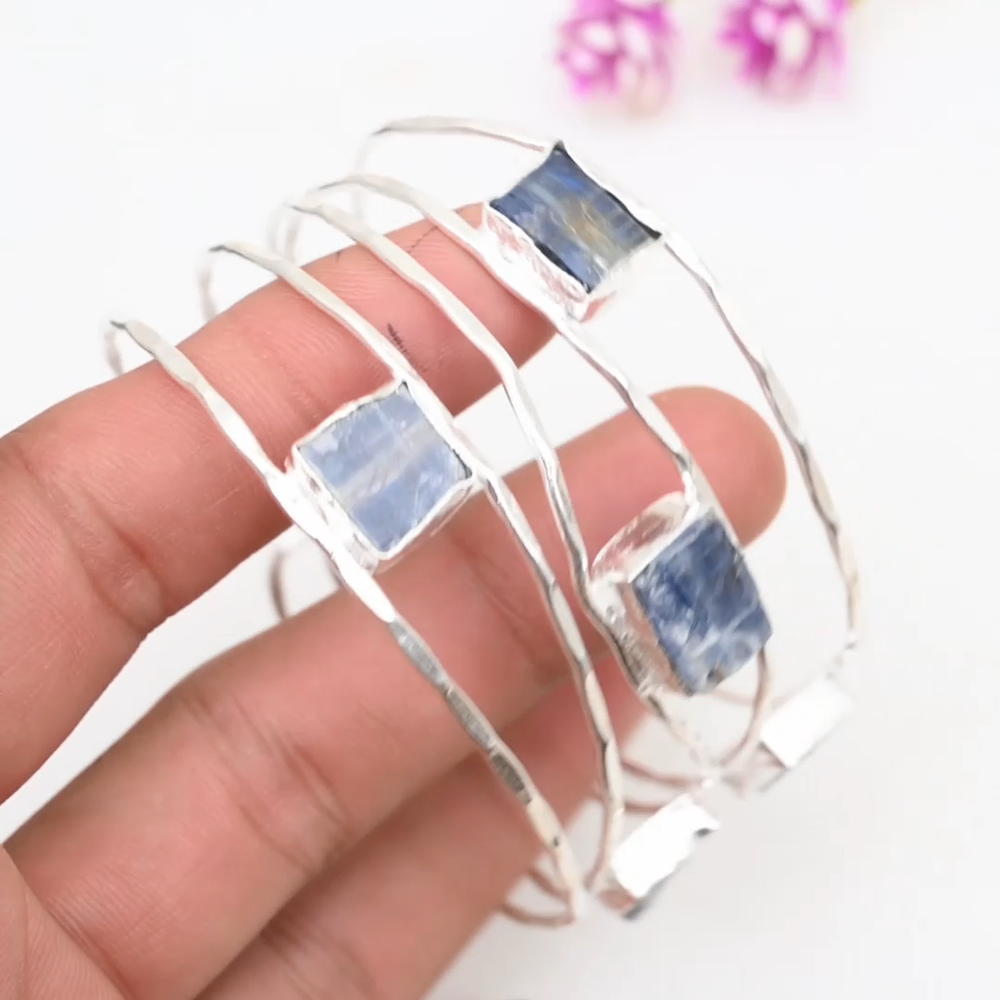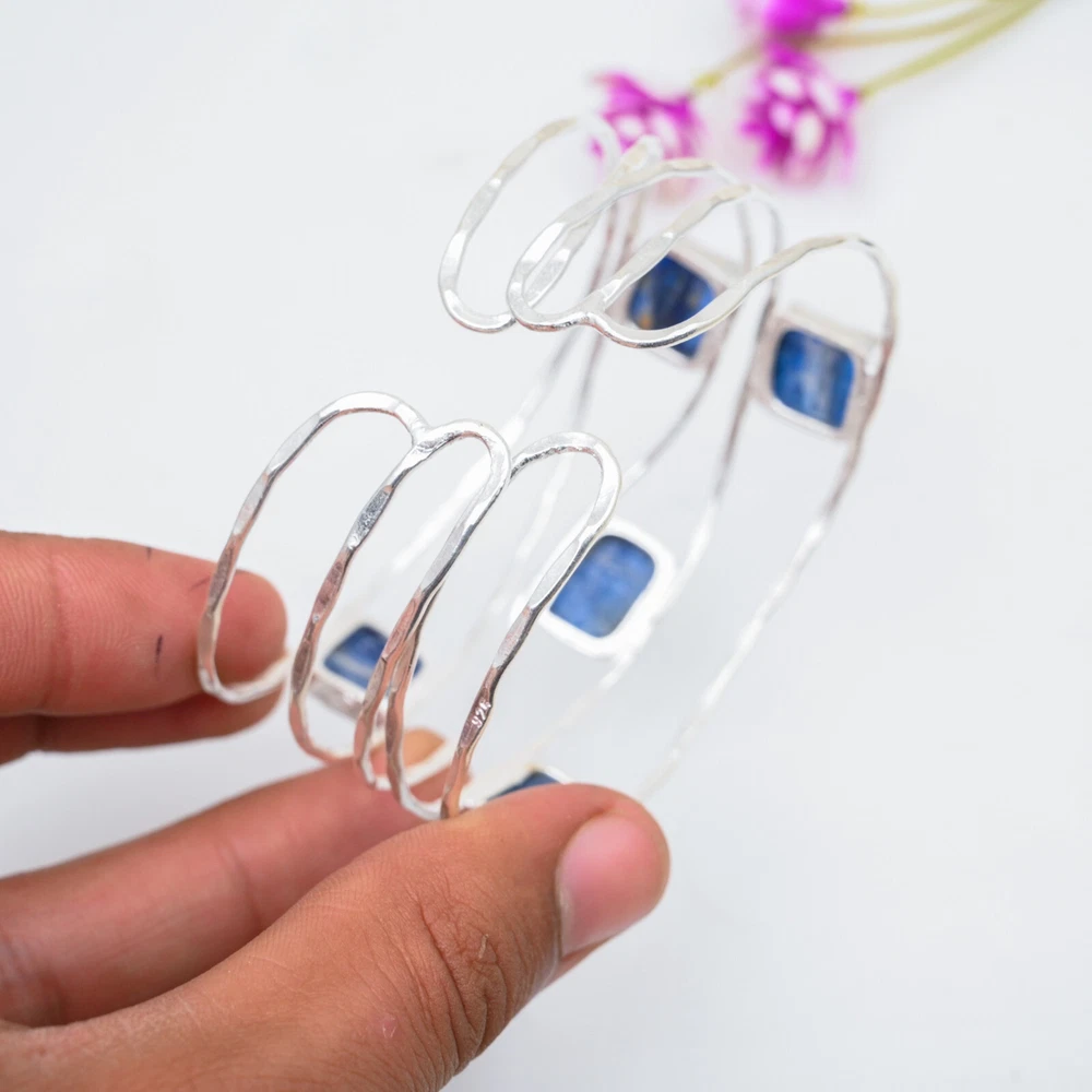 Elegant Kyanite Gemstone Cuff Bangle in 925 Sterling Silver Handmade Jewelry Gift