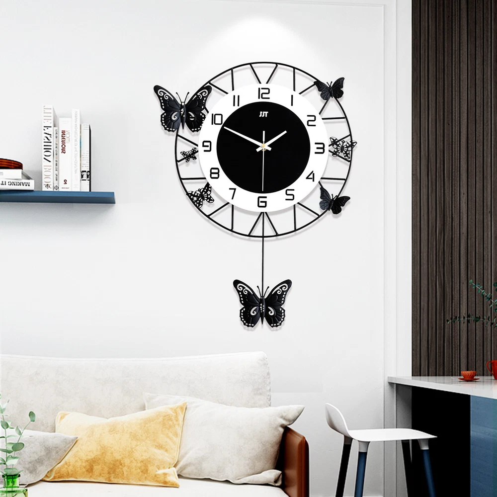1. This clock is absolutely stunning! The butterfly design adds a touch of elegance to any room, and the large size makes it easy to read from across the space. The black and white color scheme fits perfectly with modern decor, and the sturdy iron construction ensures durability. It runs quietly and keeps perfect time with just two AA batteries. I love how it enhances my living room—definitely worth every penny!
