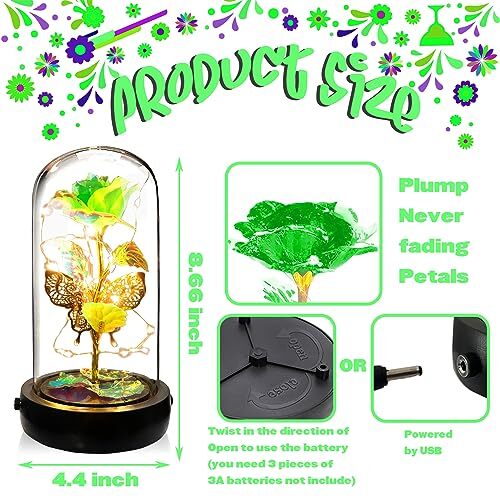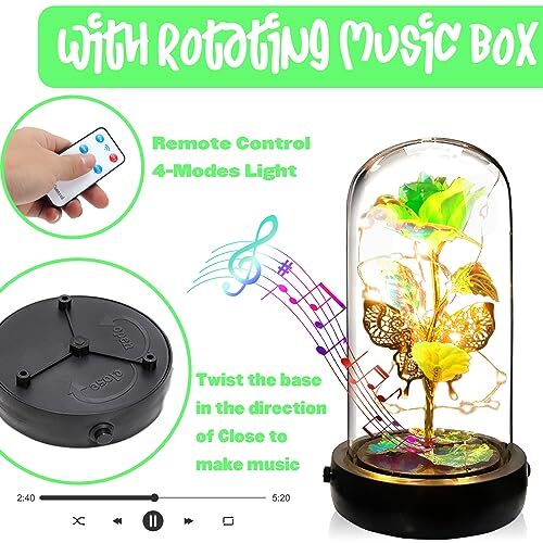 1. This beautiful light-up rose in a glass dome is such a thoughtful and elegant gift! The soft green color is stunning, and the music box adds a lovely touch. Perfect for Valentine’s Day, birthdays, or just to show someone you care. The rose looks so lifelike, and the dome keeps it protected while making it a gorgeous display piece. Fast shipping and great quality—highly recommend for moms, girlfriends, or anyone special!