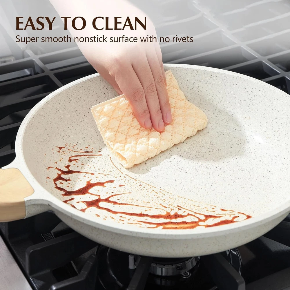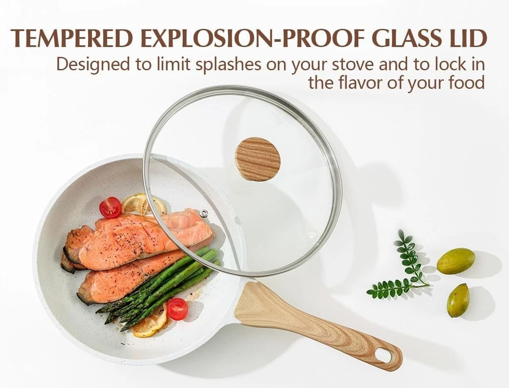 Elegant Nonstick Ceramic Frying Pan with Comfortable Grip Handle - 8-12.5” Sizes ‹ › ‹ › ‹ › ‹ › ‹ › ‹ › ‹ › ‹ › ‹ › ‹ › ‹ › Elegant Nonstick Ceramic Frying Pan Available in 8-12.5” Sizes Features: Healthy Ceramic Skillet: Crafted with a natural ceramic coating, free from harmful substances like PFOA, PTFE, PFAS, lead, and cadmium. Enjoy safe and healthy cooking without any toxic fumes. Super Nonstick Surface: Experience cooking like never before; pancakes slide effortlessly from the pan, requiring less oil for healthier meals. Induction Compatible: Constructed from heavy-duty cast aluminum, this frying pan resists warping and is suitable for all stovetops, including induction, ensuring even heating. Heat Resistant Handle: The bakelite handle, designed with a stylish wood grain finish, provides a comfortable grip while remaining cool to the touch during cooking. Tempered Glass Lid: Keep oil splatters at bay and maintain a clean stovetop with the included lid that allows for easy monitoring of your culinary creations. Ease of Cleaning: The nonstick surface and no rivets design ensure fuss-free cleaning. Rinse with warm water, a tiny amount of soap, or place it in the dishwasher for added convenience. Benefits: Promotes healthy cooking by eliminating the need for harmful coatings. Makes cooking enjoyable and easy, elevating your culinary experience. Quick and even heating on all stovetops for consistent results. Stylish design contributes to your kitchen aesthetics. Simple cleanup saves you time, allowing more moments to savor your creations. Why Choose Our Nonstick Ceramic Frying Pan? Upgrade your kitchen essentials with the Elegant Nonstick Ceramic Frying Pan—a perfect blend of health and elegance. Designed for the discerning cook, this skillet promises a seamless cooking experience with its nonstick capability and safe materials. Whether you’re flipping pancakes, sautéing vegetables, or crafting your next gourmet dish, this pan ensures you do it with grace and ease. Reimagine your cooking journey—make the intelligent choice today and add our Stylish Nonstick Ceramic Frying Pan to your kitchen collection! Shipping Free & Fast Shipping - We offer free shipping to most of the USA with a normal delivery time of 3-7 days. However, due to the current situation, additional delivery time (up to 3 weeks) may be required for some items. Alternative Carriers - We may use alternative carriers (e.g. USPS, FedEx, UPS, etc.) to ensure your package arrives safely and on time. Due to the use of multiple carriers, we are unable to provide a tracking number automatically. Handling Time - Orders are processed and shipped within 1-2 business days of receiving cleared payment. Shipping Restrictions - Shipping to Alaska, Hawaii, Puerto Rico, Guam, and other US territories may incur shipping charges or delivery restrictions. Please contact us before ordering, or your order can be refunded/cancelled. State Restrictions - There may be restrictions based on your state of purchase. For example, certain items may not be shipped to California due to state regulations. Contact for Tracking Updates - If you require tracking updates or have any concerns about the delivery of your order, please feel free to contact us, and we will be happy to assist you. Return 30-Day Hassle-Free Returns - We want you to be completely satisfied with your purchase. If you are not, you can return the item within 30 days of receiving it for a full refund or exchange. Easy Return Process - To start a return, simply contact us and we will provide you with a prepaid return shipping label and detailed instructions. Restocking Fee - There are no restocking fees for returns. However, the buyer is responsible for return shipping costs if the return is not due to a seller's error. Refund Processing Time - Refunds will be processed within 5 business days of receiving the returned item in its condition. Payment We accept all major credit cards, PayPal, and Apple Pay for your convenience. Your payment information is secure and encrypted to ensure a safe and seamless transaction. Please complete your payment within 3 days of purchase to avoid any delays in shipping. Feedback Your feedback is extremely important to us. We strive to provide the best products and customer service possible. If you are satisfied with your purchase, please take a moment to leave us a positive review. If you have any concerns or issues with your order, please contact us before leaving negative feedback. We are committed to resolving any problems and ensuring your satisfaction. Contact Us If you have any questions or concerns, please feel free to out to our customer support team. You can contact us through the eBay messaging system. We are available Monday to Friday, 9:00 am to 5:00 pm EST, and we will do our best to respond to your inquiry within 24 hours. Buy it now and enjoy a pleasant shopping experience! Unit Quantity: 2 lb Stove Type Compatibility: Electric,Gas,Induction Set Includes: Frying Pan,Lid,Tempered Glass Lid Material: Aluminum,Ceramic Features: Dishwasher Safe,Easy to Clean,Non-Stick,With Lid Type of Oven: Electric,Gas,Induction Type: Frying Pan Surface Coating: Ceramic Item Diameter: 10 in Color: White Shape: Disc Item Depth: 2.7 in Number of Items in Set: One-Piece Heat Resistance: Up to 450°F Item Weight: 2 lb Unit Type: lb