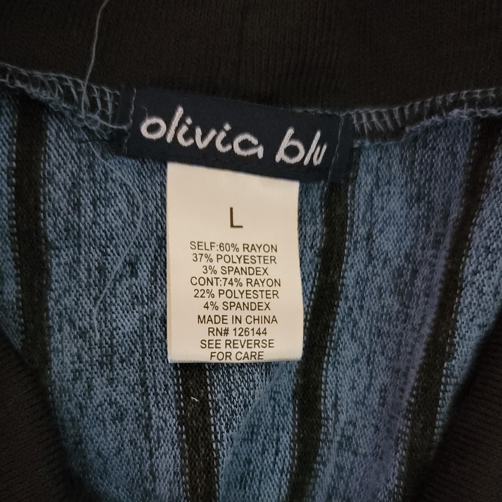 Olivia Blu High Neck 3/4 Sleeve Blouse Shirt Sz L Blue & Black ~ 26" Arm Pit to Arm Pit ~ 23" Across Waist ~ 21" Sleeve Length ~ 25.5 " Length Item is in great condition. Returns: If you decide you do not like the item or it does not fit I do accept returns within set amount of time. Payment: I do not require immediate payment, however please pay as soon as possible. Shipping: I do offer combined shipping. It is highest price plus $2 each additional item. Feedback: Feedback is automatically left after customer leaves me feedback. Condition: I try to be reserved when putting in the condition. Items are usually better than described unless it is vintage. Vintage may be a little more worn sometimes. If you have a question about condition, please ask. Thanks again for your interest in my item. I really do appreciate your business!