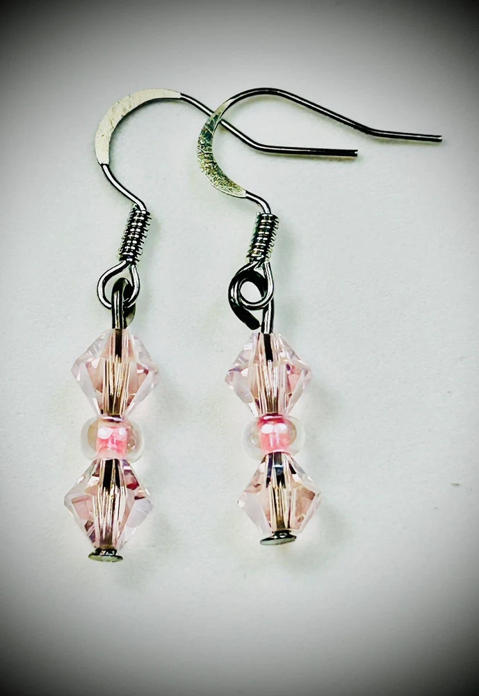 Country/Region of Manufacture: United States Secondary Stone: Glass, Crystal Type: Earrings Features: Handcrafted Material: Glass, Crystal Brand: Artisan Style: Dangle/Drop Main Stone: Crystal Closure: French Wire Metal: Silver Main Stone Color: Pink Color: Pink Ear Area: Lobe