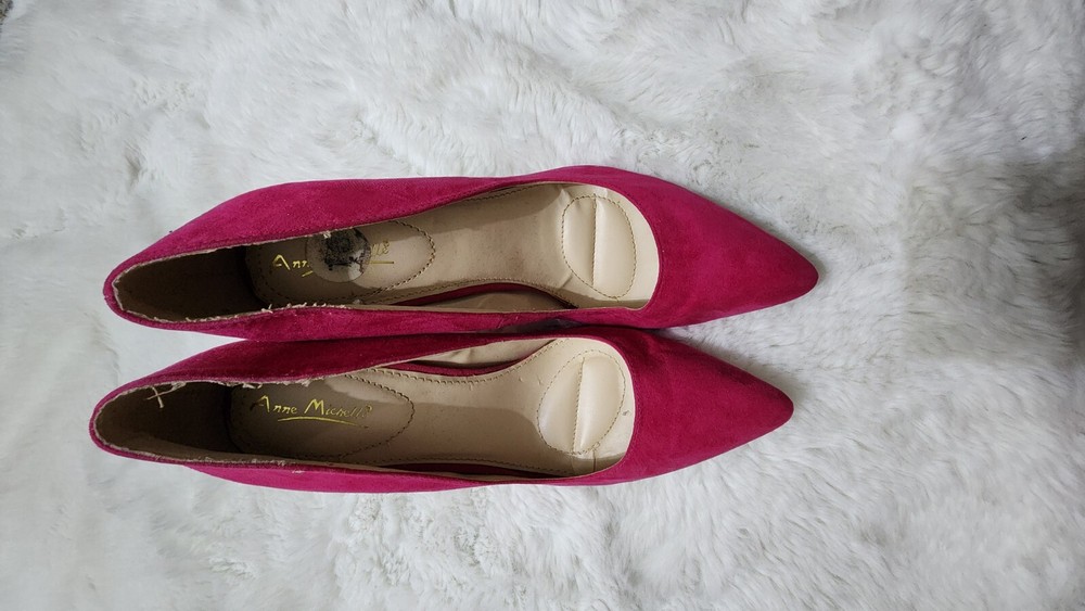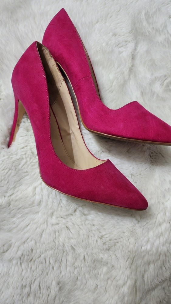 These are pink high heel pumps for women with a pointed toe and a slip-on style. The heels have an ultra-high stiletto heel measuring over 4 inches. They are suitable for many occasions and have a suede-like upper material. The shoes are in US size 10 and have a medium width. They are designed by Dream Pairs and are made in China.