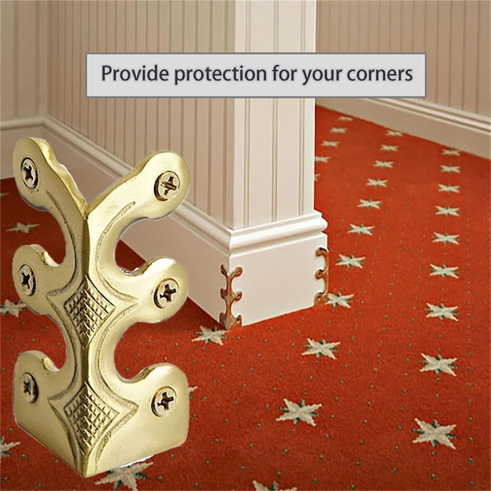 Features: 【Skiffers Baseboard Corner Protectors】 The protector can decorate your box or your furniture to make it more eleg and stable, excellent workmanship and unique design will make your furniture more attractive. 【Premium Material】 Made of copper material, strong, stable, easy to use and perfect fitting. 【Exclusive Styling】 When it comes to vacuuming or shifting furniture, corners often become vulnerable to scratches and damage. These stylish corner protectors meticulously shield against such mishaps, simultaneously elevating the sophistication and elegance of your home's decor. 【Durable Furniture Preservation】 Crafted with resilience in mind, these corner guards withstand daily usage and resist abrasions, offering steadfast preservation for wooden cases, cabinet doors, chests, and various other furniture pieces. 【Multipurpose】 Can be used in all kinds of home furniture and office products, such as tables, desks, dressers, cupboards, file cases, bookcases, drawers, wooden boxes, and more. Product Description: Material: brass Color: as the picture shows, (Due to the difference between different monitors, the picture may have slight color difference. please make sure you do not mind before ordering, Thank you!) Package weight: 150g Package size: 20x10x6cm,(Please allow 1-3mm error due to manual measurement. please make sure you do not mind before ordering.)