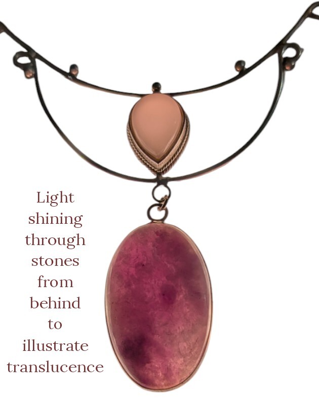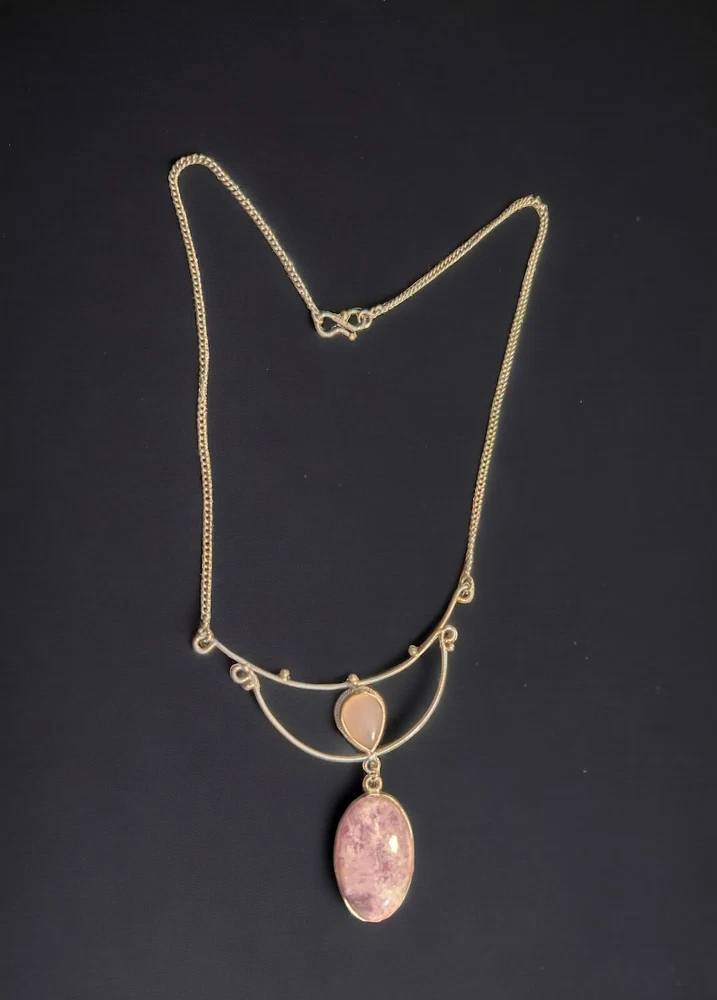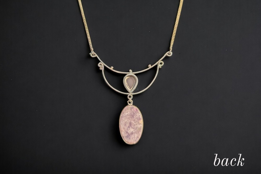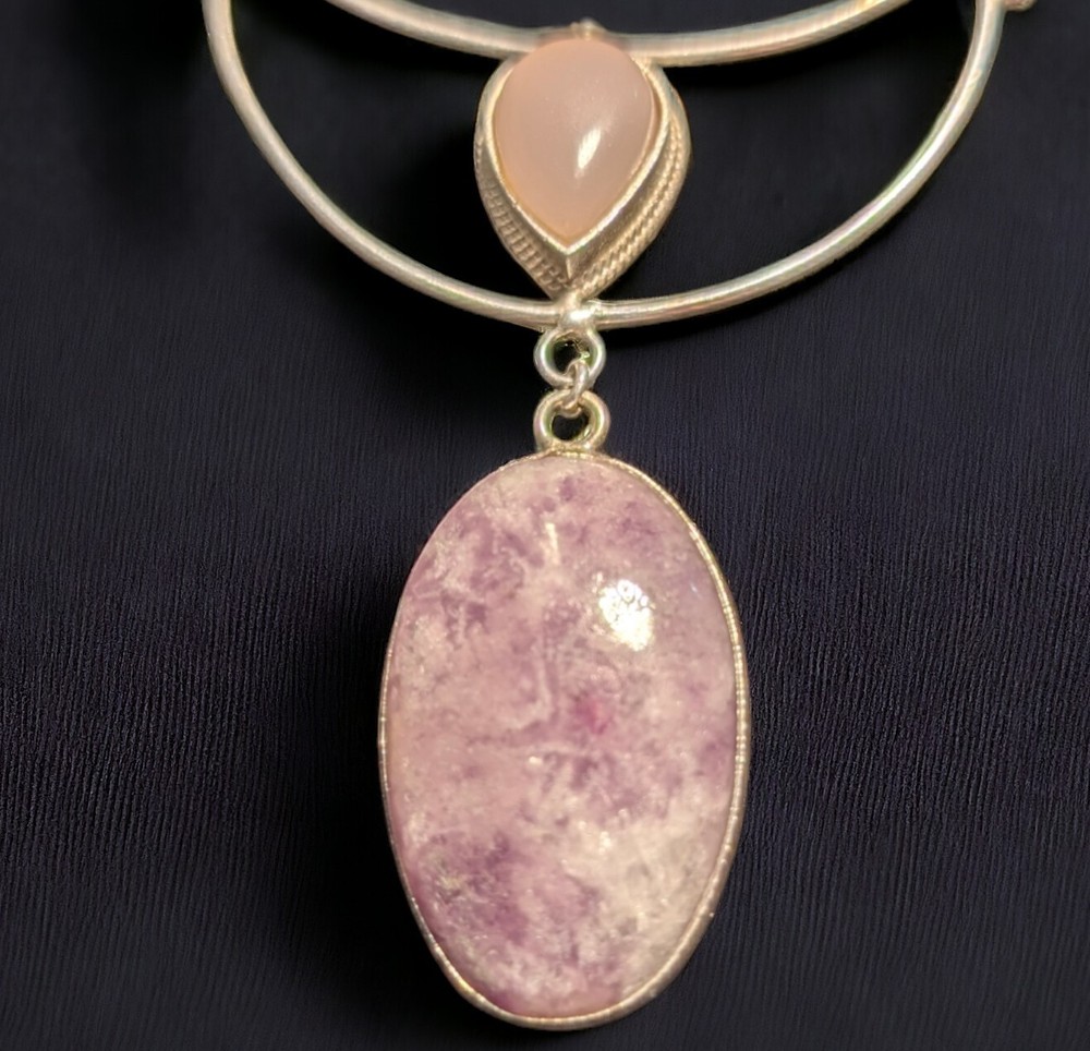 Elegant Purple Lepidolite and Rose Quartz Necklace in 925 Sterling Silver
