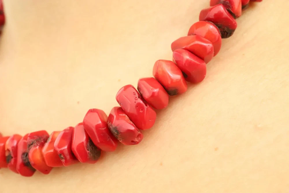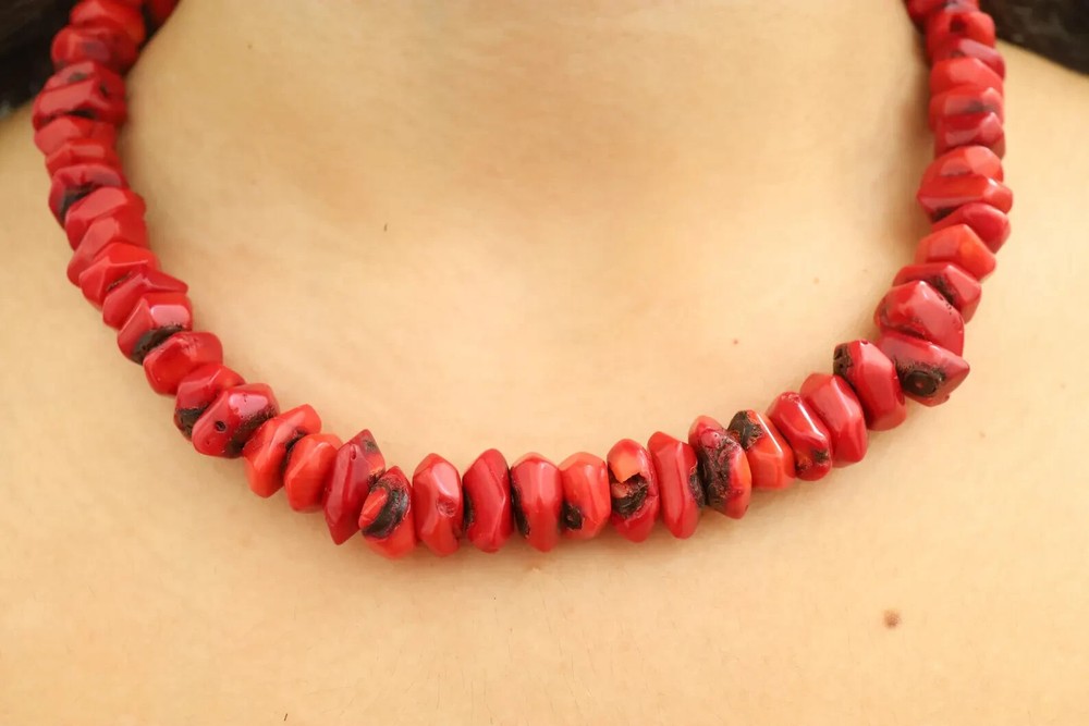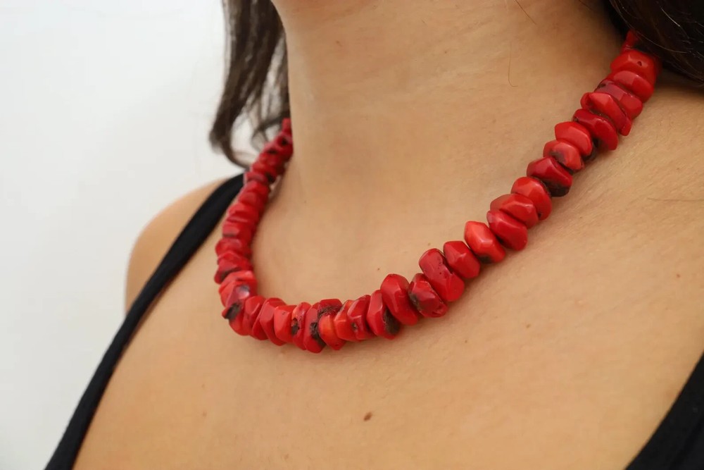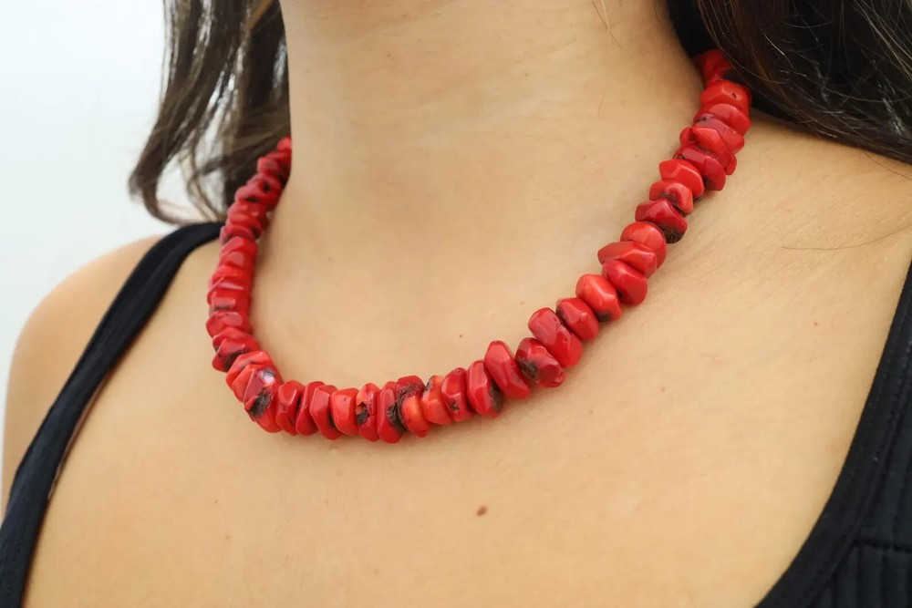 This is a gorgeous, handmade dainty chip coral necklace made with all-natural coral beads. This necklace is made of the most amazing shade of red coral beads that will go beautifully with many outfits and occasions. The minimalism of this necklace and the color of the red make this necklace simple yet beautiful and eye-catching. The beads are approximately 20mm but vary due to the shape. **Do not use liquid chemicals on the beads, just use a polishing cloth** Our items are shipped in a nice mesh pouch in a gift box. _________________________________________________________________________ All jewelry needs to be returned unworn and in its original condition and packaging. Earrings are NOT returnable for hygiene reasons. We hold the right to deny a return if the product you have sent back does not meet our requirements. You are responsible for the return shipping costs unless there has been a mistake on our end or an issue with the piece. If you are not satisfied with your purchase, please message us so we can fix any issues. We will look forward to seeing your positive review, which will help us in the future as we are a small family owned business. THANK YOU VERY MUCH for visiting our store! We hope you come by again.