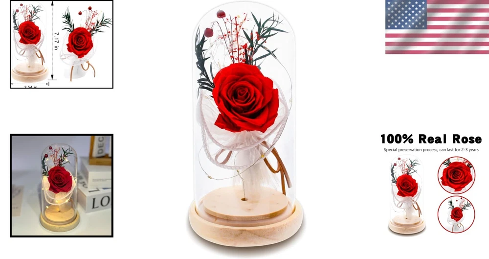 Elegant Rose Flower Gift in Glass Dome - Preserved Red Roses with Soft LED Light ‹ › ‹ › ‹ › ‹ › ‹ › ‹ › ‹ › ‹ › ‹ › ‹ › Elegant Rose Flower Gift in Glass Dome -Preserved Red Roses with Soft LED Light Features: Made from 100% real roses, preserved to maintain their color, shape, and texture for 3-5 years. Perfect for various celebrations: Birthdays, Anniversaries, Christmas, Thanksgiving, Mother's Day, and more. An everlasting symbol of love and beauty, representing a bond that will never fade away. Removable glass dome for protection, paired with a wooden base for timeless elegance. Soft LED light enhances the beauty of the rose, creating a charming ambiance at night. Maintenance-free - no watering or upkeep required. Handcrafted with care; each bouquet may have slight variations in appearance. Benefits: Creates an emotional connection and expresses love, gratitude, and admiration. Beautiful home decor that adds a touch of elegance and romance to any room. A thoughtful gift that is sure to create surprise and delight for loved ones. Durable and long-lasting, making it a perfect keepsake for cherished memories. No need for direct sunlight or humid environments ensures longevity and beauty. Why choose our Elegant Rose Flower Gift? Looking for a gift that captures the essence of your love? Our Elegant Rose Flower Gift in Glass Dome is more than just a beautiful decoration; it is a testament to the emotions that bind us. Craftsmanship born from real roses and an exquisite presentation in a glass dome with soft LED lighting transforms a simple gesture into a profound statement of affection. Give the gift of everlasting romance - a delightful surprise that transcends occasions. Celebrate your moments with an enchanting experience that signifies a love that will never wither. Order yours today and embrace endless romance! Shipping Free & Fast Shipping - We offer free shipping to most of the USA with a normal delivery time of 3-7 days. However, due to the current situation, additional delivery time (up to 3 weeks) may be required for some items. Alternative Carriers - We may use alternative carriers (e.g. USPS, FedEx, UPS, etc.) to ensure your package arrives safely and on time. Due to the use of multiple carriers, we are unable to provide a tracking number automatically. Handling Time - Orders are processed and shipped within 1-2 business days of receiving cleared payment. Shipping Restrictions - Shipping to Alaska, Hawaii, Puerto Rico, Guam, and other US territories may incur shipping charges or delivery restrictions. Please contact us before ordering, or your order can be refunded/cancelled. State Restrictions - There may be restrictions based on your state of purchase. For example, certain items may not be shipped to California due to state regulations. Contact for Tracking Updates - If you require tracking updates or have any concerns about the delivery of your order, please feel free to contact us, and we will be happy to assist you. Return 30-Day Hassle-Free Returns - We want you to be completely satisfied with your purchase. If you are not, you can return the item within 30 days of receiving it for a full refund or exchange. Easy Return Process - To start a return, simply contact us and we will provide you with a prepaid return shipping label and detailed instructions. Restocking Fee - There are no restocking fees for returns. However, the buyer is responsible for return shipping costs if the return is not due to a seller's error. Refund Processing Time - Refunds will be processed within 5 business days of receiving the returned item in its original condition. Payment We accept all major credit cards, PayPal, and Apple Pay for your convenience. Your payment information is secure and encrypted to ensure a safe and seamless transaction. Please complete your payment within 3 days of purchase to avoid any delays in shipping. Feedback Your feedback is extremely important to us. We strive to provide the best products and customer service possible. If you are satisfied with your purchase, please take a moment to leave us a positive review. If you have any concerns or issues with your order, please contact us before leaving negative feedback. We are committed to resolving any problems and ensuring your satisfaction. Contact Us If you have any questions or concerns, please feel free to reach out to our customer support team. You can contact us through the eBay messaging system. We are available Monday to Friday, 9:00 am to 5:00 pm EST, and we will do our best to respond to your inquiry within 24 hours. Buy it now and enjoy a pleasant shopping experience! UPC: Not Set Item Width: Not Set Unit Quantity: 1 Material: Glass,Wood,Rose,LED Common Name: Rose Brand: Unbranded Product: Preserved Roses Type: Flower Bouquet Artificial/Fresh: Artificial Form: Arrangement & Centerpiece Color: Red Occasion: Anniversary MPN: Not Set Theme: Not Set Size: 9.45 x 3.94 x 3.94 in Country/Region of Manufacture: Not Set Item Height: Not Set Number in Pack: 1 Unit Type: oz Personalize: Not Set Personalized: Not Set