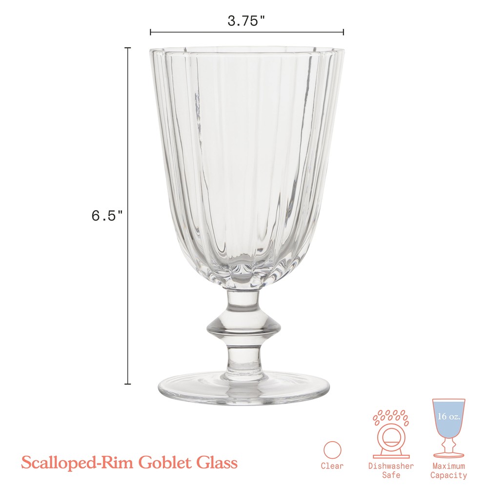 Bring a touch of soft and modern drinkware to your home bar and dining table for all your gatherings with this Beautiful by Drew set of 4 Scalloped Rim Goblets in cornflower blue. Made of lead free crystal, this easy elegant stemware combines casual silhouettes with a classic scalloped design for a stunning look that complements any flatware or dinnerware. Goblets are ideal for everyday enjoyment or entertaining and are perfect for iced tea and water as well as your wines and spirits. Mix and match with other Beautiful by Drew drinkware, dinnerware, and serve ware to create an intriguing tablescape. Set of 4 ach measuring 6-1/2 inches high by 3-3/4 inches in diameter with a 16 fluid ounce capacity. Dishwasher safe. ELEGANT STEMWARE: Beautiful by Drew Scalloped-Rim Goblets in cornflower blue add soft and modern drinkware to your home bar and dining table. Perfect for everyday use and all of your gatherings, combining casual and easy silhouettes with a classic scallop USE FOR ANY OCCASION: goblets are ideal for everyday enjoyment of iced tea and water as well as your favorite wines and spirits at formal gatherings WELL CRAFTED: made of lead-free crystal, this stunning set can be mixed and matched with other Beautiful by Drew drinkware, dinnerware, and serve ware to create an expressive tablescape SET OF 4: each goblet measures 6-1/2 inches high by 3-3/4 inches in diameter with a 16-fluid-ounce capacity EASY CARE: dishwasher safe for quick, thorough cleaning Beautiful Scallop Set of 4 Glass Goblet Blue by Drew Barrymore: 5312839