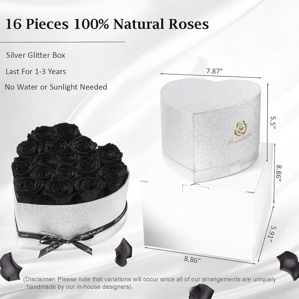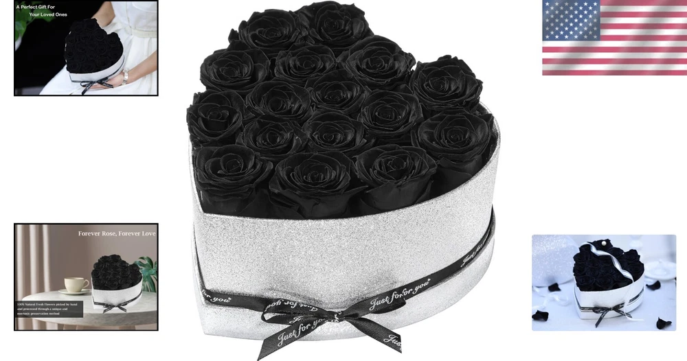 Elegant Silver Glitter Heart Box with 16 Forever Roses - Romantic Gift Idea ‹ › ‹ › ‹ › ‹ › ‹ › ‹ › ‹ › ‹ › ‹ › Elegant Silver Glitter Heart Box with 16 Forever Roses Looking for a romantic gift that exudes love and elegance? Our exquisite Silver Glitter Heart Box is adorned with 16 luxurious Forever Roses, delivering a timeless message of affection that lasts long after special moments have passed. Features: Long-Lasting Beauty: Preserved from the highest quality fresh roses, these expertly crafted flowers maintain their fresh appearance for 1-3 years with minimal care. Thoughtful Gift: Perfect for all occasions—anniversaries, Valentine's Day, birthdays, Mother's Day, Christmas, engagements, and more. A delightful way to express your love and appreciation. Elegant Presentation: Beautifully arranged black infinity roses in a mesmerizing silver glitter heart-shaped box, making it not just a gift, but a stunning piece of decor. Romantic Gifts for Her: Ideal for women of all ages! Whether it's a birthday for your girlfriend, mother, or grandmother, this gift embodies romance and admiration. Why Choose Our Forever Roses? Unlike traditional flowers, which fade and wither, our Forever Roses are artfully preserved to serve as a lasting reminder of your most cherished moments. This makes them the perfect gift to bring joy and elegance into your loved one's life for years to come. Imagine the look on her face when she receives this gorgeous arrangement, thoughtfully designed to create an enchanting atmosphere wherever it’s displayed. Important Tips: Do not take the immortal flower rose bush out of its box. Please do not water the roses. Avoid exposure to direct sunlight. Make heads turn and hearts flutter with this enchanting Eternal Flower arrangement. Order your Elegant Silver Glitter Heart Box with 16 Forever Roses today and let love blossom eternally! Shipping Free & Fast Shipping - We offer free shipping to most of the USA with a normal delivery time of 3-7 days. However, due to the current situation, additional delivery time (up to 3 weeks) may be required for some items. Alternative Carriers - We may use alternative carriers (e.g. USPS, FedEx, UPS, etc.) to ensure your package arrives safely and on time. Due to the use of multiple carriers, we are unable to provide a tracking number automatically. Handling Time - Orders are processed and shipped within 1-2 business days of receiving cleared payment. Shipping Restrictions - Shipping to Alaska, Hawaii, Puerto Rico, Guam, and other US territories may incur shipping charges or delivery restrictions. Please contact us before ordering, or your order can be refunded/cancelled. State Restrictions - There may be restrictions based on your state of purchase. For example, certain items may not be shipped to California due to state regulations. Contact for Tracking Updates - If you require tracking updates or have any concerns about the delivery of your order, please feel free to contact us, and we will be happy to assist you. Return 30-Day Hassle-Free Returns - We want you to be completely satisfied with your purchase. If you are not, you can return the item within 30 days of receiving it for a full refund or exchange. Easy Return Process - To start a return, simply contact us and we will provide you with a prepaid return shipping label and detailed instructions. Restocking Fee - There are no restocking fees for returns. However, the buyer is responsible for return shipping costs if the return is not due to a seller's error. Refund Processing Time - Refunds will be processed within 5 business days of receiving the returned item in its original condition. Payment We accept all major credit cards, PayPal, and Apple Pay for your convenience. Your payment information is secure and encrypted to ensure a safe and seamless transaction. Please complete your payment within 3 days of purchase to avoid any delays in shipping. Feedback Your feedback is extremely important to us. We strive to provide the best products and customer service possible. If you are satisfied with your purchase, please take a moment to leave us a positive review. If you have any concerns or issues with your order, please contact us before leaving negative feedback. We are committed to resolving any problems and ensuring your satisfaction. Contact Us If you have any questions or concerns, please feel free to reach out to our customer support team. You can contact us through the eBay messaging system. We are available Monday to Friday, 9:00 am to 5:00 pm EST, and we will do our best to respond to your inquiry within 24 hours. Buy it now and enjoy a pleasant shopping experience! UPC: Not Set Item Width: Not Set Unit Quantity: 1 Material: Fresh Rose Common Name: Rose Brand: Unbranded Product: Preserved Roses in Heart Box Type: Flower Box Artificial/Fresh: Fresh Form: Arrangement & Centerpiece Color: Black Occasion: Birthday MPN: Not Set Theme: Romantic Size: 7.87 x 7.87 x 5.5 inches Country/Region of Manufacture: Not Set Item Height: Not Set Number in Pack: Less Than 10 Unit Type: lb Personalize: Not Set Personalized: Not Set