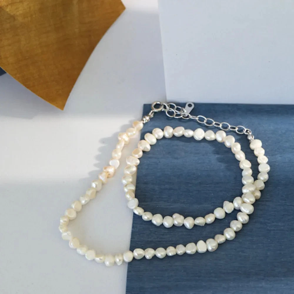 Sterling Silver Gold Box Chain Beads Choker Long Necklace Fine Women