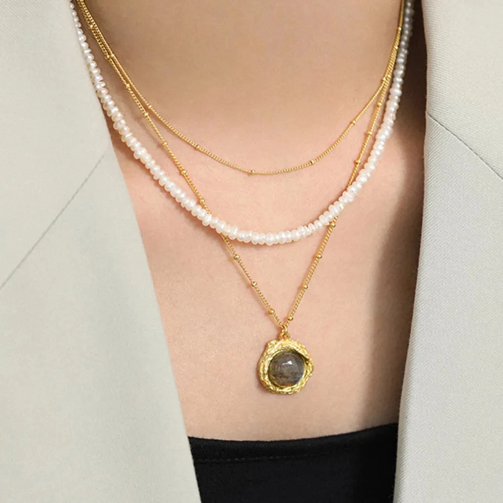 $ 5.66Silver Necklace Double Layer Chain Zircon Heart Pendants Necklaceskolye Choker