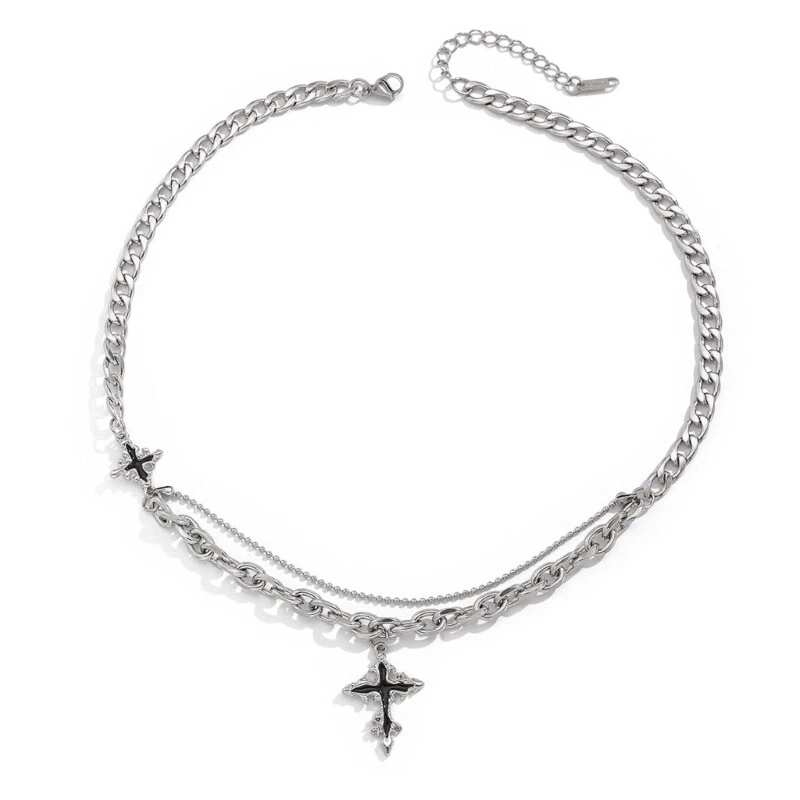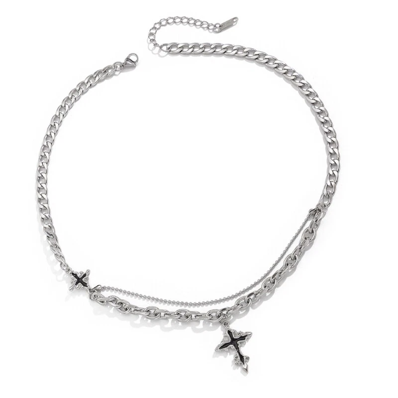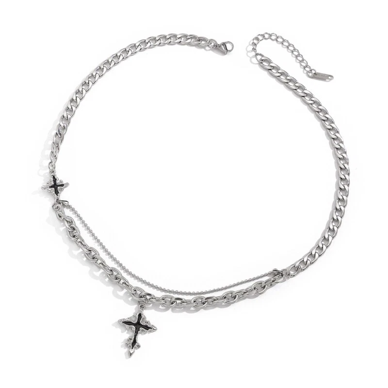 Elegant Starbursts Inlaid Crosses Choker Necklace for Women and Girls Jewelry