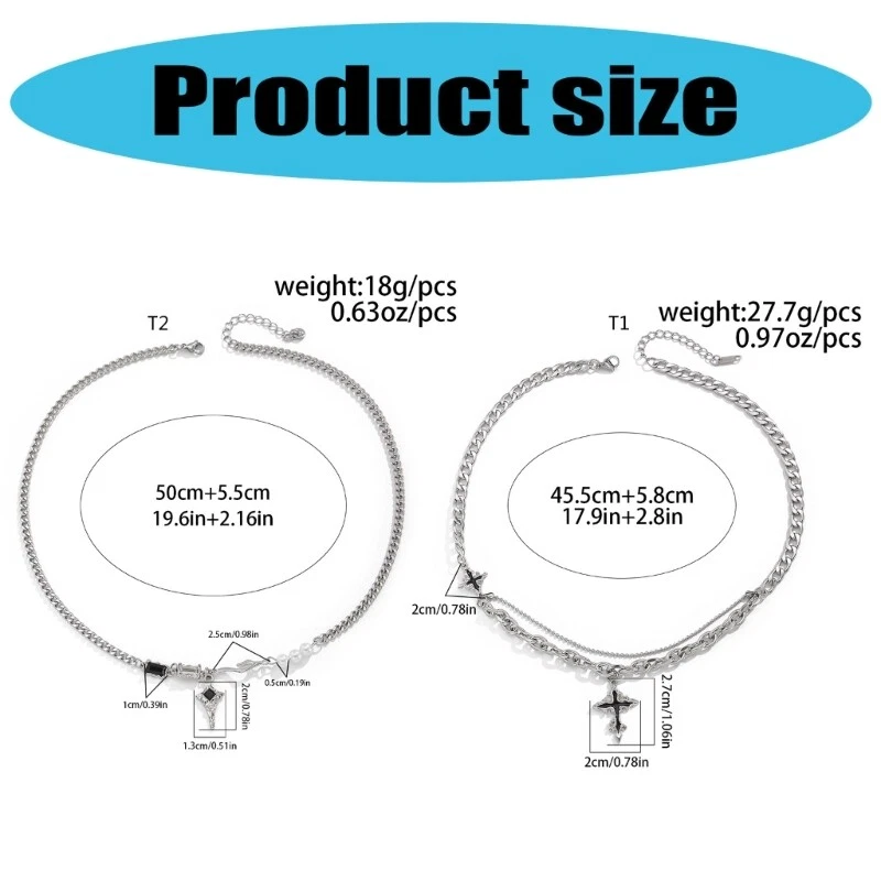 Elegant Starbursts Inlaid Crosses Choker Necklace for Women and Girls Jewelry Features: Elevating your styles with our Pearls Starbursts Crosses Necklace,elegant and modern designs that stands out as a statement pieces. Crafted from sturdy stainless steel, alloy, and imitation pearls, this necklace boasts durability and comfort, ensuring is a long time use addition to any jewelry collection. For fashionable women, trendsetters, and those expressing with a unique accessory, this necklace caters to a diverses audiences. For various occasions, from casual daily wear to parties and dates, this versatile necklace complements any outfit, adding sophistication and charm. Embracing the pearls trend with confidences; our Cuban link necklace with imitation pearls is designs and make a fashionable expression wherever you go. Specifications: Component: Alloy, Stainless Steel, Imitation Pearls Type: As Picture Show, Two Type to Choose Size: 50+5.5cm/19.6+2.16inch, 45.5+5.8cm/17.9+2.8inch Package Includes: 1pc Crosses Necklace note: 1.Please allow 1-2cm errors due to manual measurement, making sure that you will not mind before order. 2.Due to the differences between different monitors, the picture may not reflect the actual color.