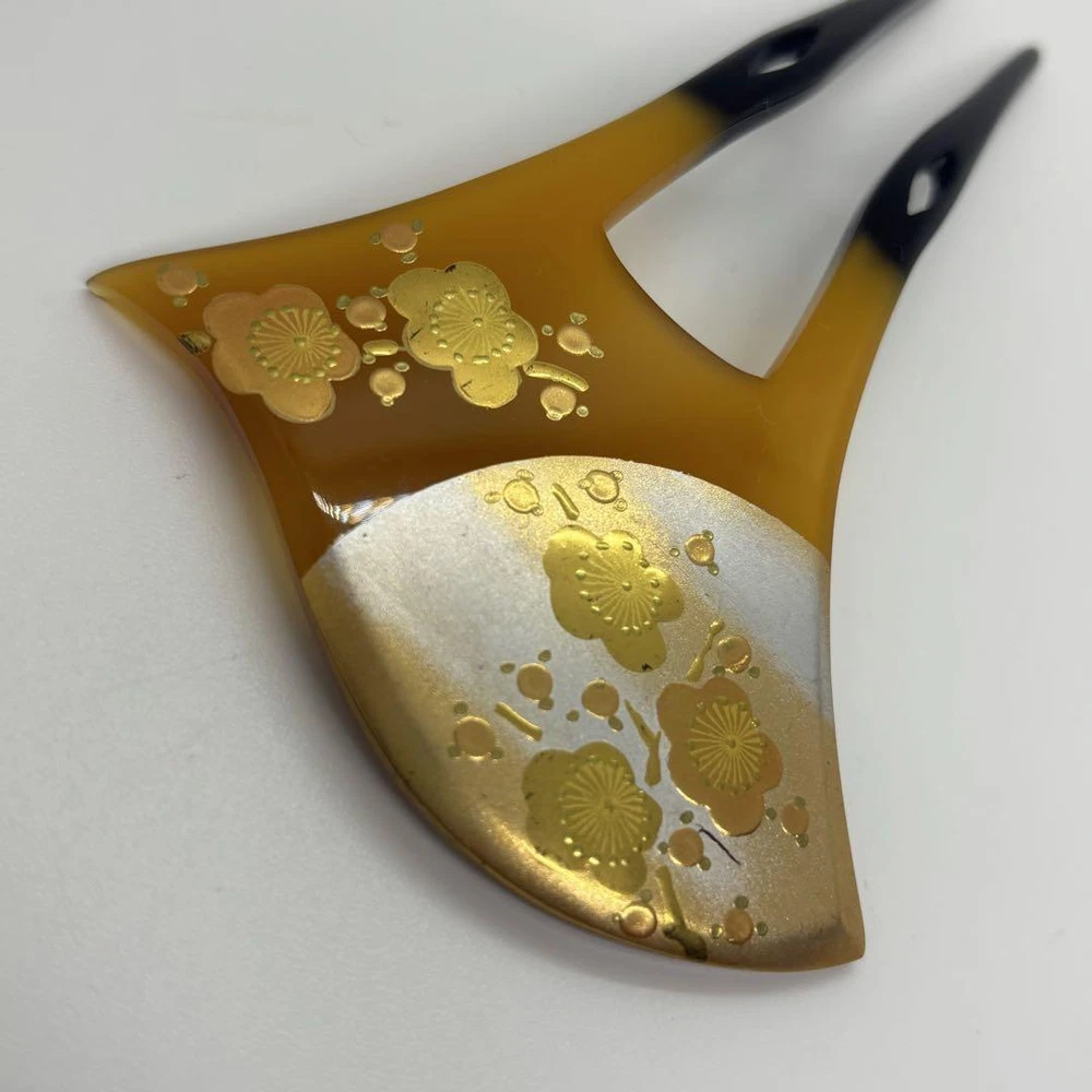 Elegant Tortoise Shell Kanzashi Hairpin with Plum Blossom & Silver Moon Design Key Features **Beautiful Plum Blossom and Moon Kanzashi Hairpin** - **Brand**: Koudo - **Product Type**: Kanzashi Hairpin - **Design**: Features exquisite plum blossoms and a silver moon, beautifully crafted with gold maki-e (sprinkled gold) technique. - **Material**: High-quality tortoiseshell-like finish, offering an elegant and luxurious appearance. - **Size**: Popular bachi-style shape, suitable for various hairstyles. - **Color**: Rich and harmonious colors that reflect traditional Japanese aesthetics. - **Condition**: New, with no visible scratches or stains. - **Occasions**: Perfect for weddings, parties, and everyday wear with kimono or yukata. - **Symbolism**: The plum blossom represents resilience and longevity, making it a meaningful choice for celebrations. This kanzashi is a timeless piece that embodies grace and beauty, suitable for all ages. Specifications Brand No Brand Country Japan Product Description Item Descriptions Thank you for taking a look at the item we are listing. This item is a used item. If you have any questions or concerns about this item please feel free to contact us. We also have many other items on ebay besides this item. It would be great if you could take a look at that as well. If you do not see the item you want in our listings please contact us and we will do our best to find it for you. We will do our best to find the item you want. Please make sure you understand all of our policies including our sales policy before you buy. We are selling this item in accordance with ebay's policies. Please be sure to review ebay's policies before making a purchase Handling Time Handling Time : 10 business days Due to the ongoing global holiday season there is a significant increase in the handling of packages by shipping companies. Therefore it is possible that there may be delays in pickup shipping and during transit. Please make your purchase with an understanding of these potential delays. In the event of any delays rest assured that we will investigate and take responsibility. Please buy with confidence. Message For You Thanks for taking a look at my products. We hope you will consider them. I am listing on ebay with my company. I am listing my products on ebay in Japan. I have only slight feedback. It may be making you uncomfortable. But don't worry. I will provide courteous and responsive service. We also have a variety of other products for sale. We hope you will take a look at those as well. If you are looking for a particular item that is not in my listing please do not hesitate to contact me. I will look it for you. ※All of the products we sell are cleaned and disinfected during inspection. We hope you will consider purchasing our products. All of the products we sell are cleaned and disinfected during inspection. Please be sure to review and understand the policies listed below before making a purchase. If you have any questions please contact us. There is an inquiry button at the top. Notice Becausethe international air shipping forbid to ship liquidpowder and batteries If you purchased goods containing such items we will not be putting them packing. Please understand them before purchasing the product. INTERNATIONAL BUYERS Import duties taxes and fees are not included in the price or shipping charges of the items you purchase. You are responsible for payment of any import duties taxes and fees. If you are unsure of the price of import duties taxes and fees please contact your country's customs office for confirmation. If you owe import duties taxes or fees they will be charged to you by the shipping company. When we ship goods we do not undervalue the declared value below the value of the goods. We also do not ship as gifts. These are strictly prohibited by eBay policy. Please refer to the following for more information. https://www.ebay.com/help/buying/shipping-delivery/changing-delivery-address-method/international-purchases-shipping?id=4057 There are also other ebay policies that buyers should review. Please be sure to abide by them before making a purchase. FEEDBACK POLICY We provide timely customer support to all purchasers. We will respond to your inquiry within 24 hours. Our working hours are from 10:00 to 20:00 Japan time. Once you have received your item please make feedback for us as this will let us know that you have received your item. In case of damage please be sure to take pictures of the following items and send them to us 1. Photograph of the entire item 2. Photograph of the damaged part 3. A photo of the condition of the cushioning material in the package 4. A photo of the condition of the cardboard box it arrived in SHIPPING POLICY Shipping methods are Japan Post FedEx and DHL. If you select "Economy Shipping from outside US" or "Economy International Shipping" at the time of purchase your order will basically be shipped by Japan Post. All shipments are tracked. Please buy with confidence. Shipping by Fedex or DHL is the fastest shipping method available. This can be changed for an additional charge. Please select "Standard Shipping from Outside the U.S." or "International Standard Shipping" if you prefer. Shipments are usually made within 5-10 business days. The earliest we can ship is the day after the ship date and in some areas it may take several days but we try to get your order to you as soon as possible. A shipment control number or tracking number will be sent to the customer as soon as it is issued. We strictly adhere to package handling times. Estimated arrival time in Economy Asia: 2 to 3 weeks Oceania: 2 weeks North America: 2-3 weeks Middle East: 2-3 weeks Europe: 2-3 weeks *It may take longer than the estimated arrival date due to carrier and traffic conditions in each region. Due to global disruptions we may not be able to ship to some areas. Subject to change on a daily basis. If we find after purchase that we are unable to ship we