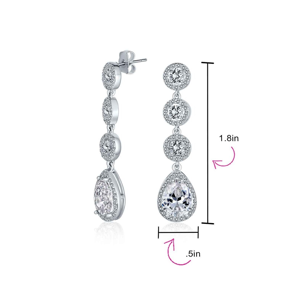 Classic Bridal Jewelry Fashion Statement Triple Round Pave Green Clear CZ Halo Long Linear Pear Shape Dangle Teardrop Chandelier Earrings For Women Wedding Prom Yelow Gold Silver Plated Product Details Color: Clear Brand: Bling Jewelry MPN: OA-21OLA2085-PR UPC: 810901032082 EAN: 0810901032082 Is Discontinued By Manufacturer : No Product Dimensions : 2.2 x 0.6 x 2.2 inches; 0.64 ounces Item model number : OA-21OLA2085-PR Department : womens Date First Available : June 5, 2023 Manufacturer : Bling Jewelry Brand, Seller, or Collection Name: Bling Jewelry Metal stamp: Not stamped Metal: rhodium-plated-brass Material: Gemstone, Metal Gem Type: Cubic Zirconia Minimum total gem weight: 12.00 carats Setting: Halo Item Length: 1.75 inches Height: 1.75 inches Width: 0.45 inches Length: 1.75 inches Back finding: Push Back Resizable: No Number of stones: 82 Stone Weight: 5.00 carats Model number: DT-GE2693-S Size per pearl: not-applicable Attention, August ladies! These stunning teardrop earrings are perfect for you. Featuring gorgeous colors and a blend of stones, this cz jewelry exudes glamour. Crafted with shining metals, they showcase colorless and green Simulated Peridot cz stones. The top sections flaunt round cut green stones surrounded by colorless ones, alternating with clear stones. The bottom section dazzles with a teardrop-shaped green stone encircled by colorless CZs. Representing August birthstone jewelry, we chose a rich, dark green shade. Whether August-born or a green lover, these earrings are a glam addition to any gown. Treat yourself or the Simulated Peridot fans in your life today!