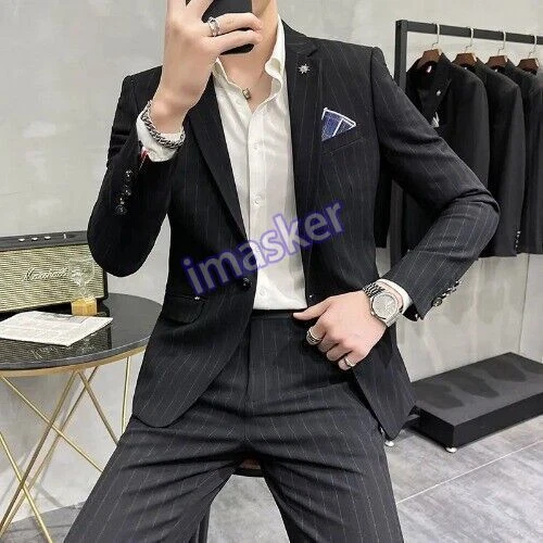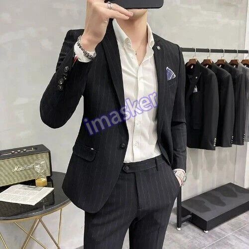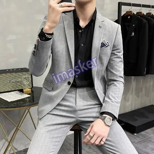 $ 10.56Men's Luxury Spring Business Wedding Suit Double Breasted Coat & Pants