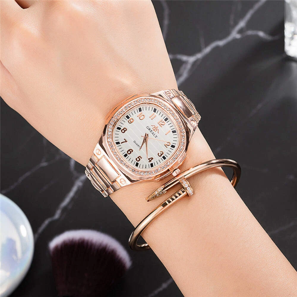Elegant Waterproof Quartz Watch for Women with Diamond Accents Product Information: Waterproof performance: life waterproof Movement type: quartz Thickness: 10mm Dial diameter: 40mm Crown type: spiral crown Table bottom type: ordinary Mirror material: Quartz glass mirror Buckle style: horseshoe buckle Buckle material: alloy Strap material: alloy Dial shape: round Elegant Waterproof Quartz Watch for Women with Diamond Accents Product Information: Waterproof performance: life waterproof Movement type: quartz Thickness: 10mm Dial diameter: 40mm Crown type: spiral crown Table bottom type: ordinary Mirror material: Quartz glass mirror Buckle style: horseshoe buckle Buckle material: alloy Strap material: alloy Dial shape: round eBay integration by