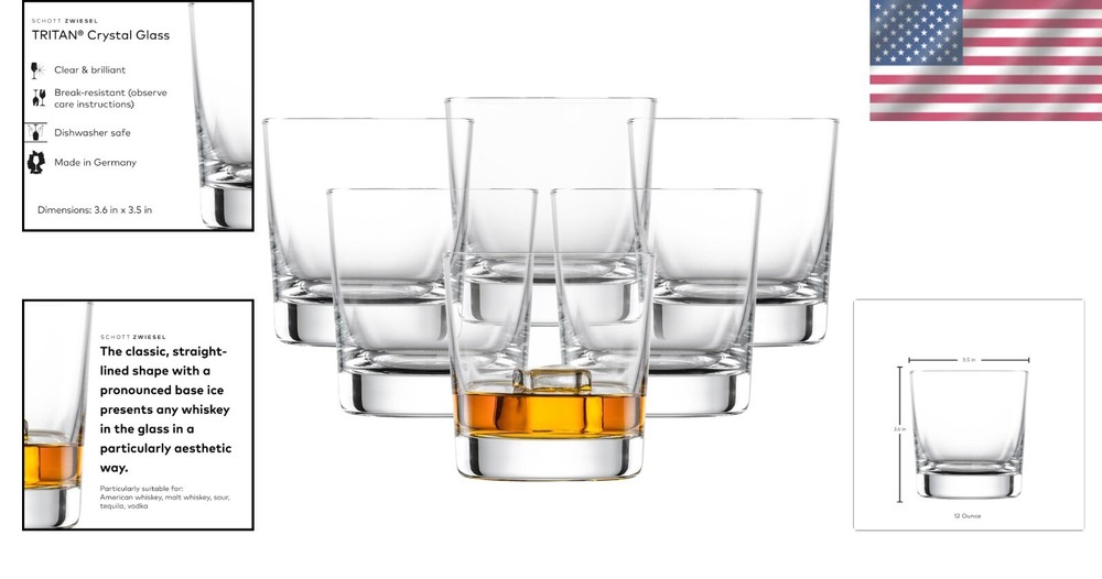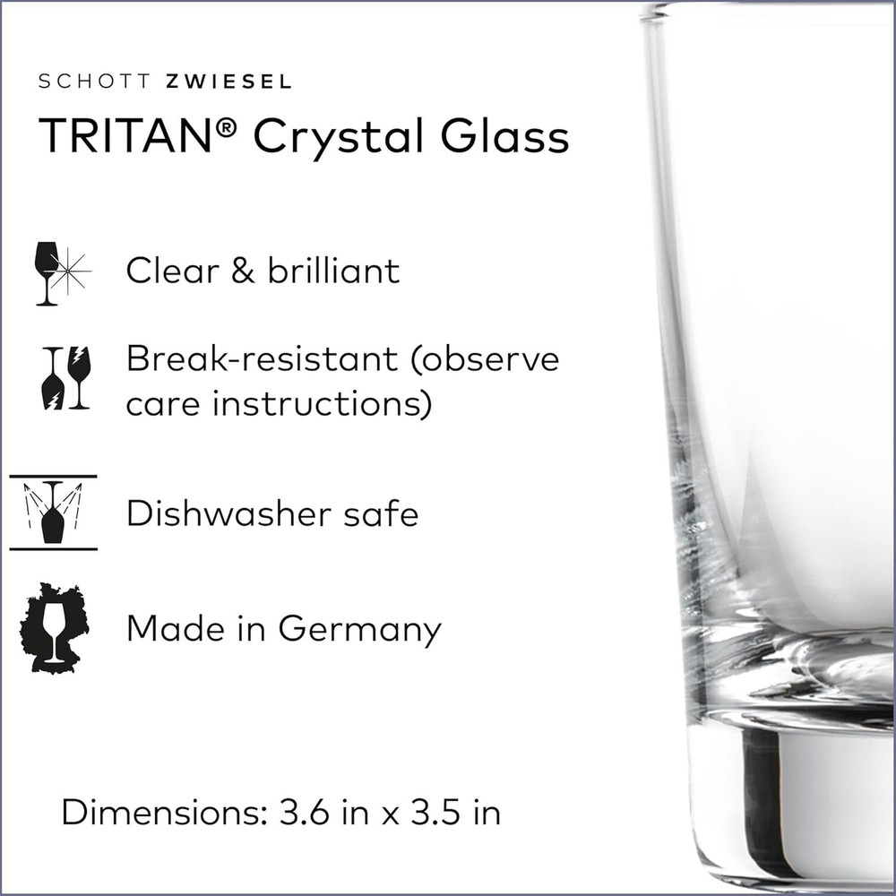 Finish Types: Glossy Set Includes: Tumbler Type: Whiskey Glass Capacity: 12 oz Included Components: 6 Glasses UPC: Does Not Apply Theme: Bar Pattern: Solid Style Name: Whiskey Item Height: 3.6 Inches Reusability: Reusable Material: Tritan Crystal, Tritan Crystal Glass Department: Adults Age Range Description: Adult Material Type Free: Lead Free Design: Round Global Trade Identification Number: 00646292000276 Service For: 6 Unit Count: 6.0 Count Occasion: Cocktail Party, All Occasions Special Feature: Insulated, Break_resistant, Dishwasher Safe It Brand: Unbranded Recommended Uses For Product: Home Specific Uses For Product: Old Fashioned, Whiskey Sour, Caipirinha Care Instructions: Hand Wash Only Number Of Items: 6 Style: Classic Material Type: Tritan Crystal Glass Additional Features: Insulated, Break_resistant, Dishwasher Safe It Item Weight: 0.66 lb Glassware Type: Whiskey Glass Number of Items in Set: Six-Piece Product Care Instructions: Hand Wash Only Features: Dishwasher Safe, Break/Chip Resistant, Insulated Shape: Round Item Dimensions W X H: 3.4"w X 3.6"h gtin13: Does Not Apply Material Features: Recyclable Personalize: No Color: Clear