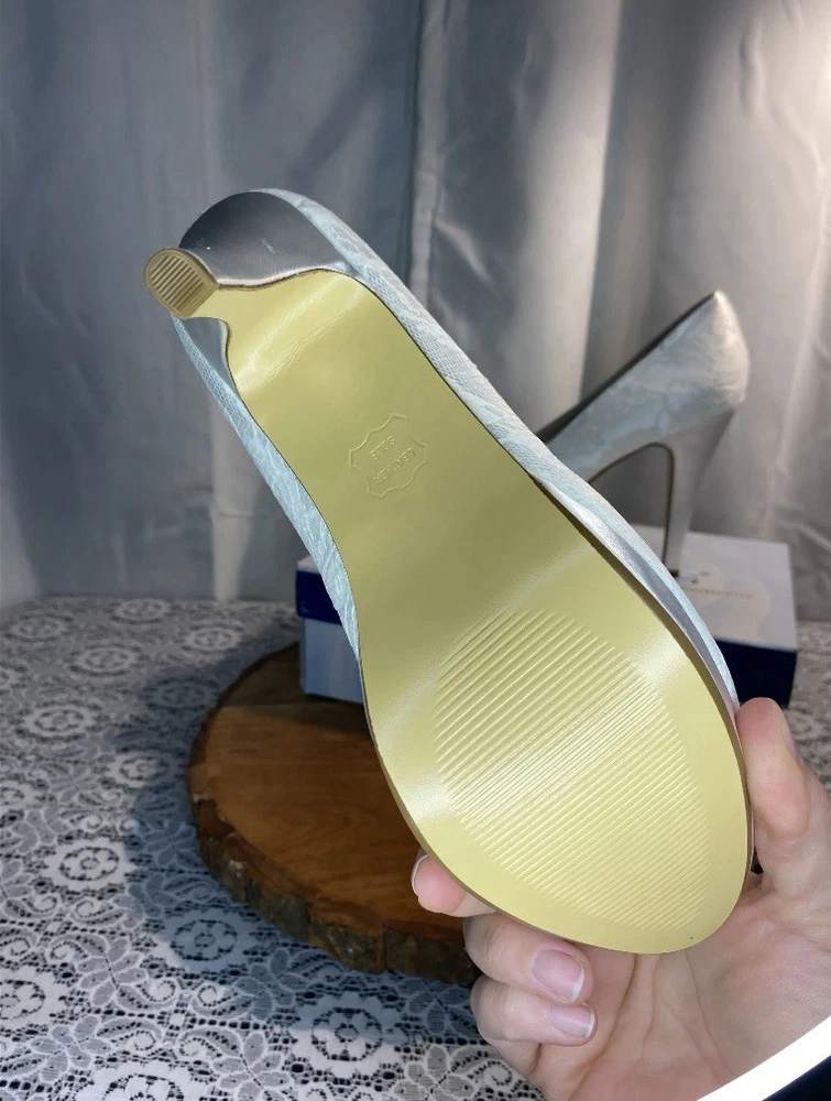 Good American Square Toe Heels Sandals Silver Snake Lucite Women's Sz 9 Stiletto