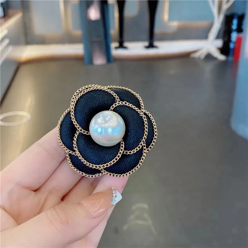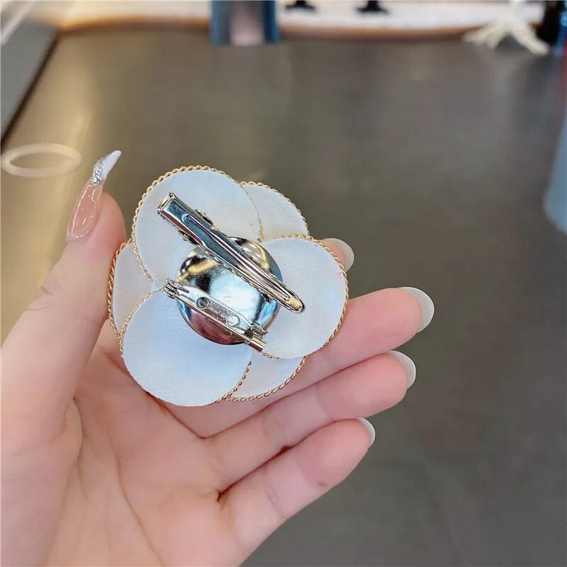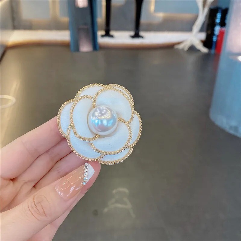 Elegant White Pearl Camellia Brooch Premium Flower Corsage Pin