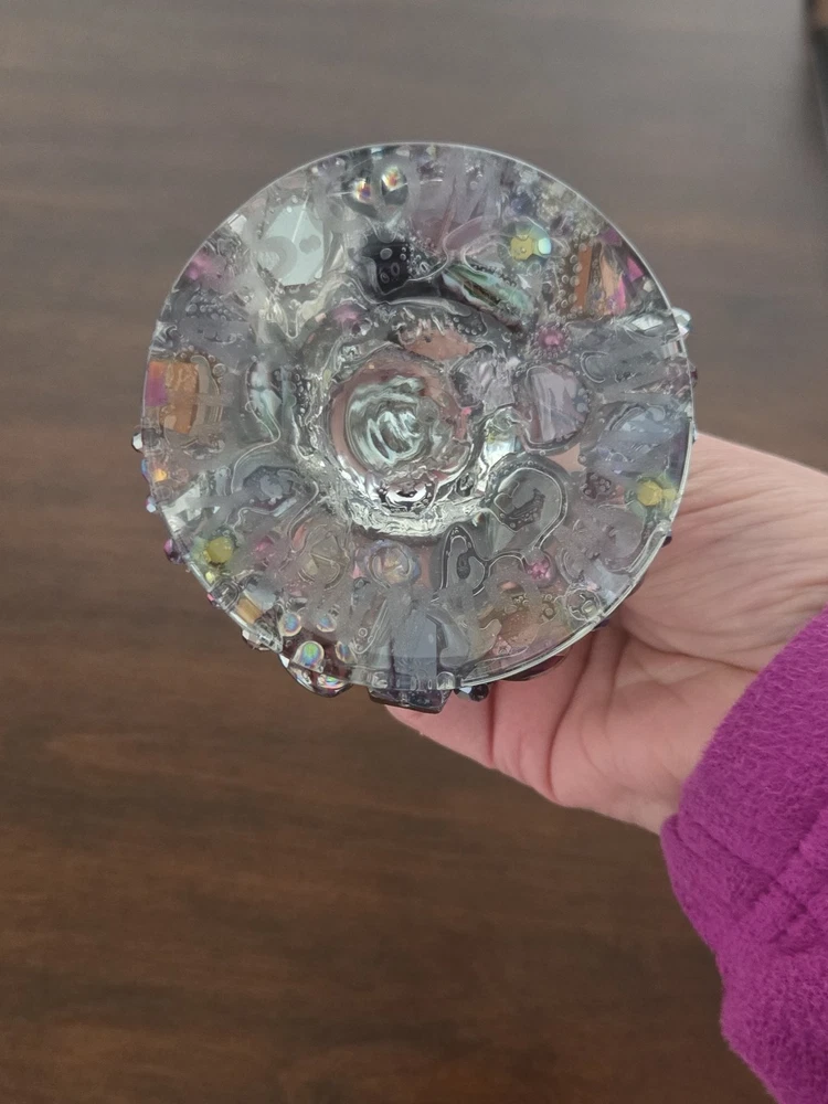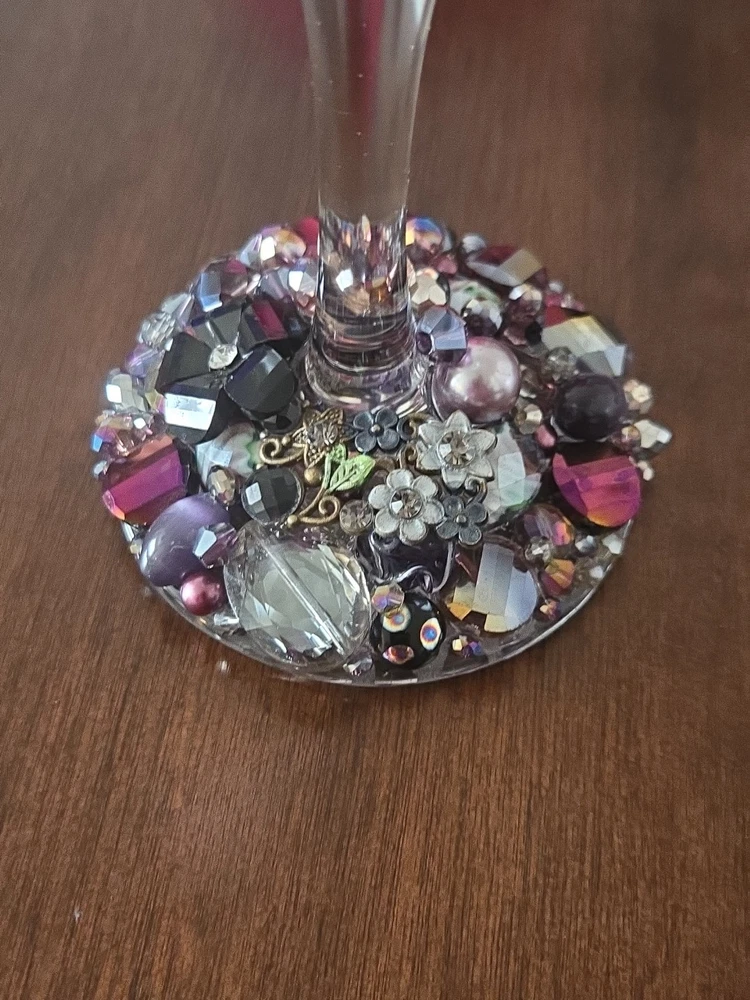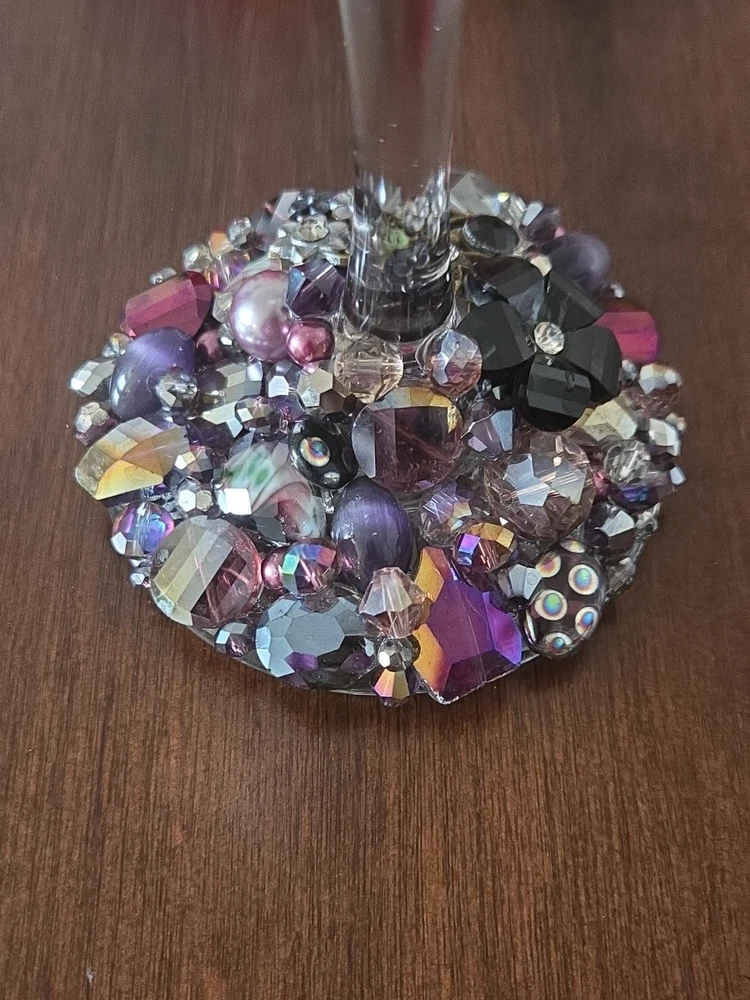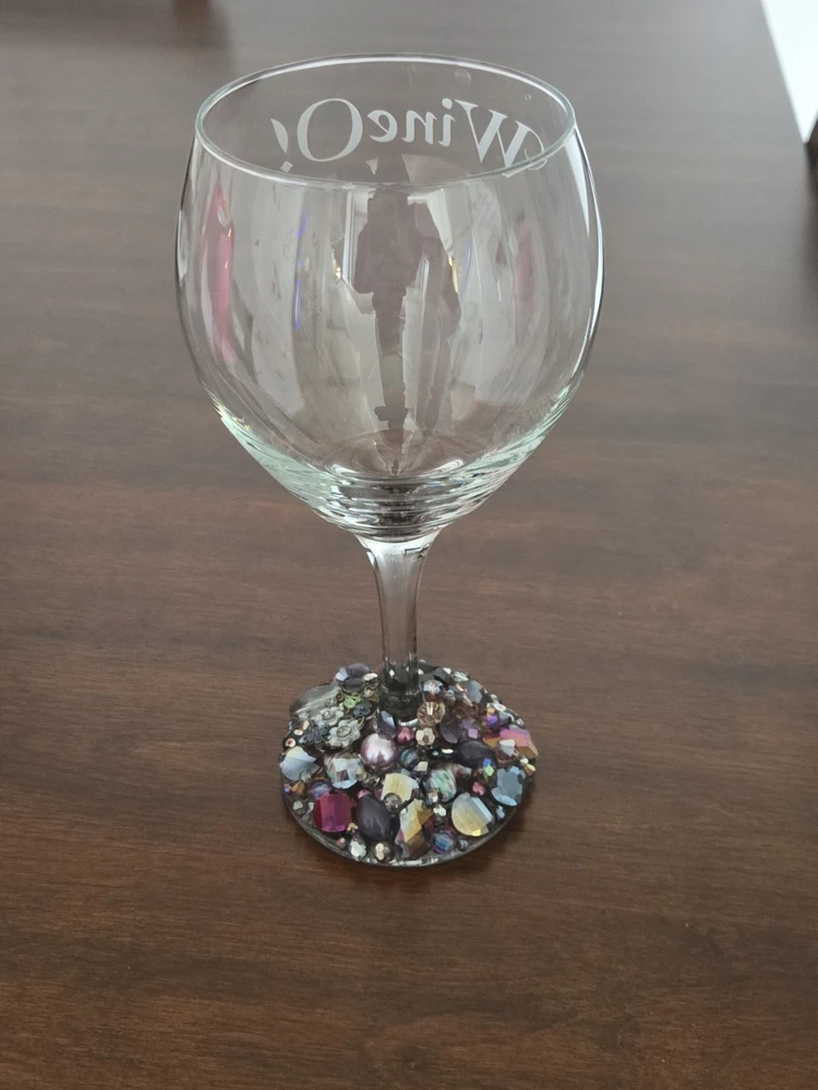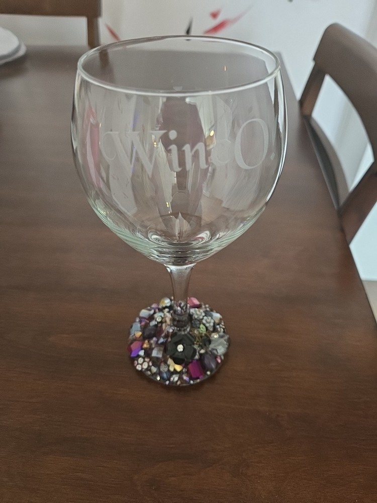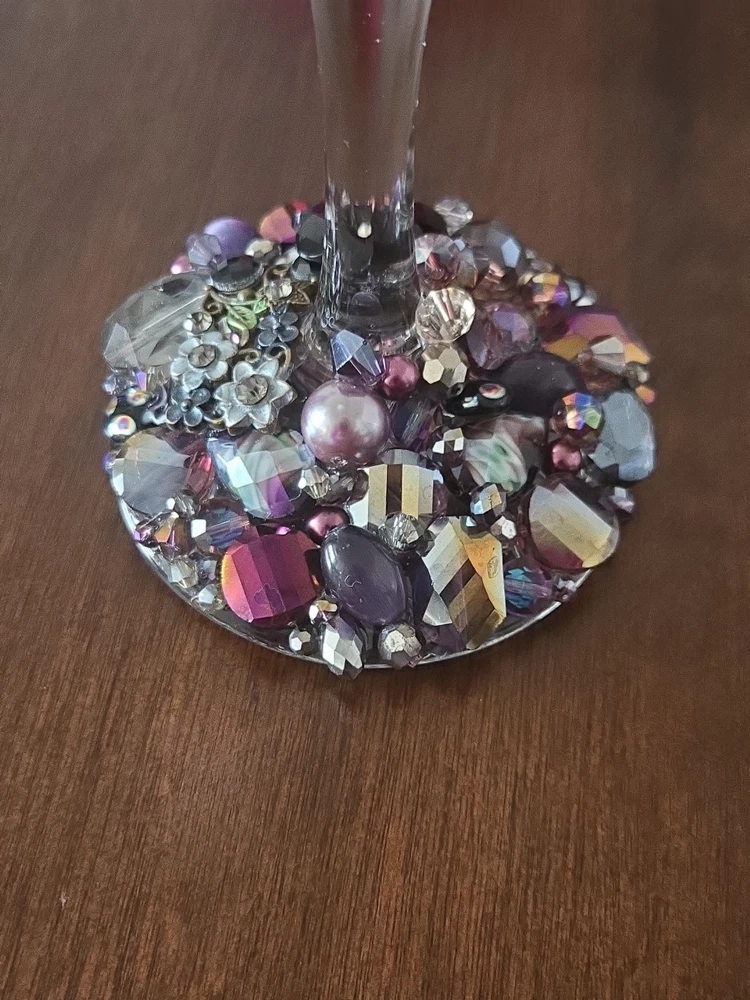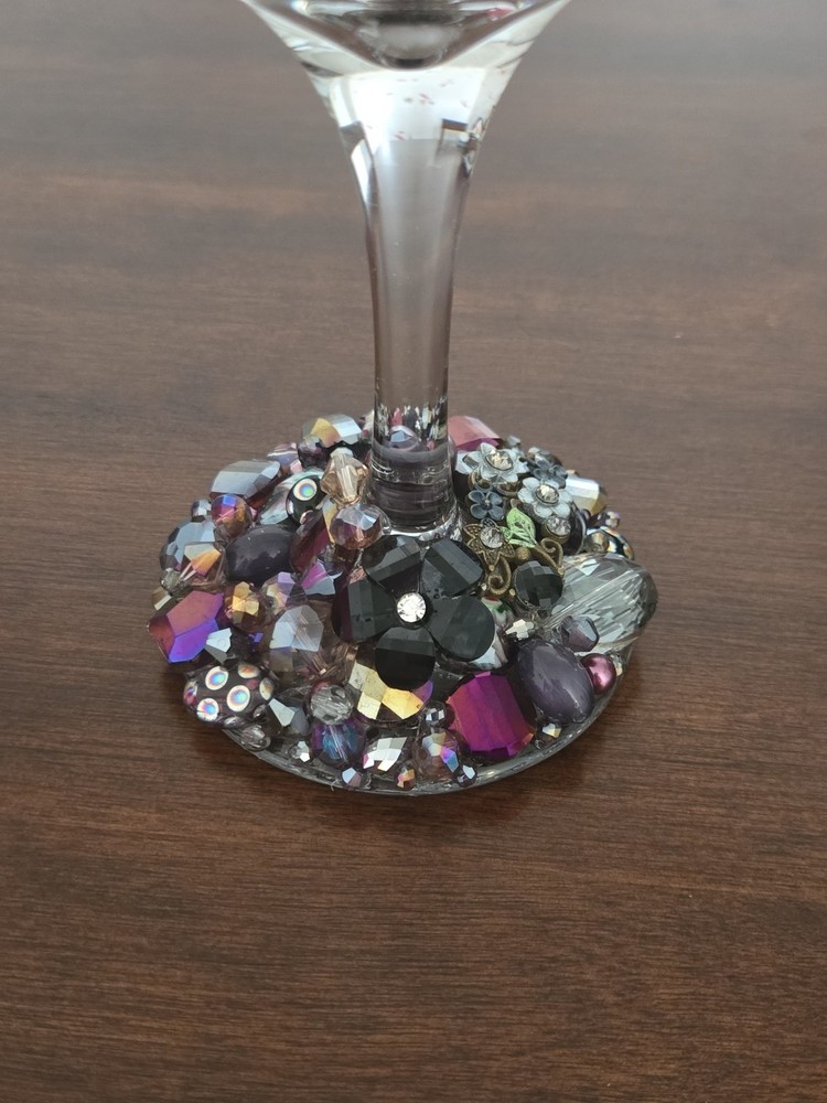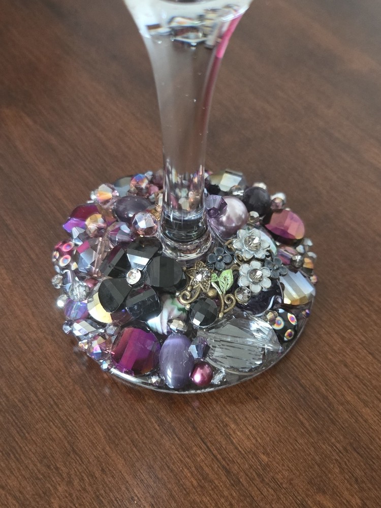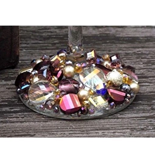 This listing is for 1 Etched & Embellished Wine Goblet - "Wine O!" This particular wine base has been embellished with the finest glass beads, crystals, and natural stones in coordinating shades of purple, gold and champagne holding 20oz. ❤ Every piece is handmade IN THE USA and unique therefore no two pieces are identical! ❤ Each glass is sandblasted which is an old school technique used to engrave on many different surfaces such as stone, glass, wood, and metal. No chemicals are used to etch the glassware; etching is PERMANENT and will never wear off or fade! Please message me with any questions! From smoke-free 🚭 daushaund friendly home 🐾