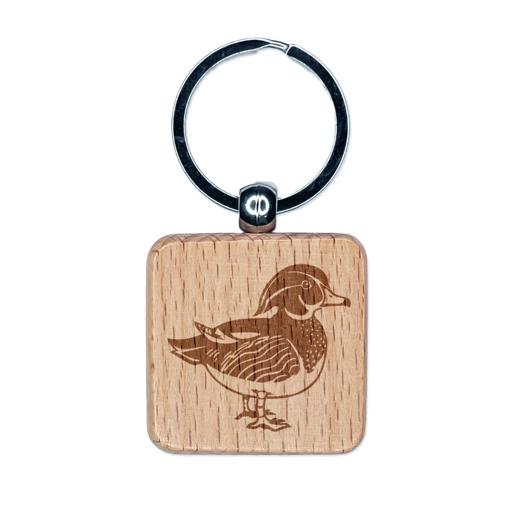 Elegant Wood Duck Engraved Wood Square Keychain Tag Charm