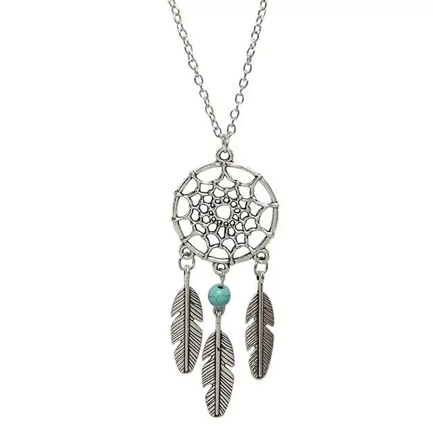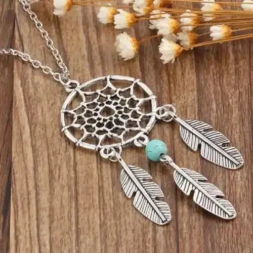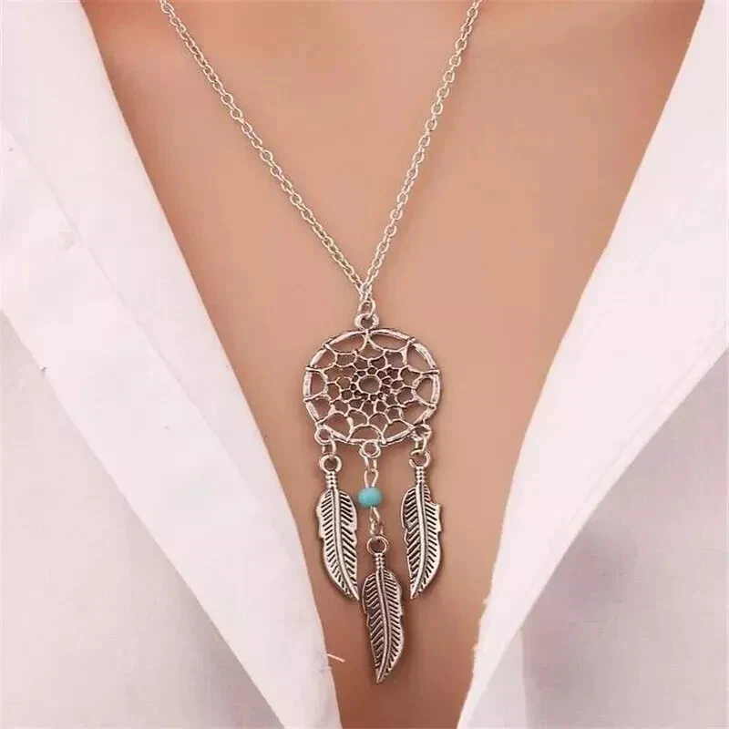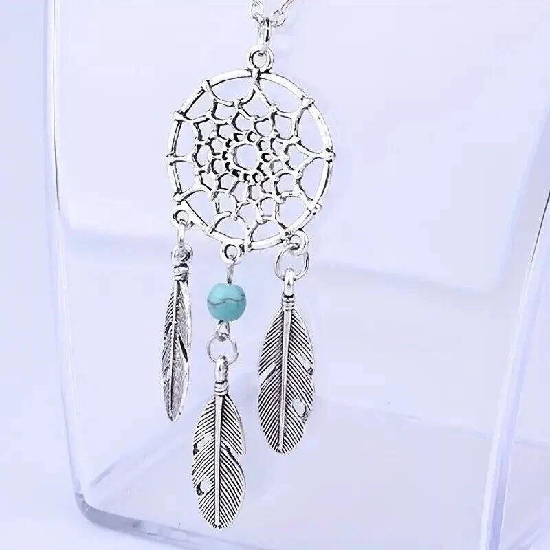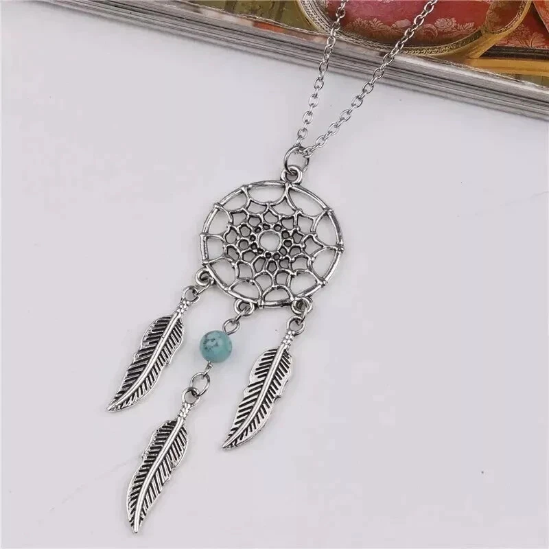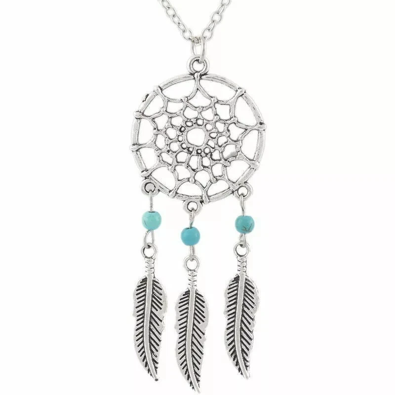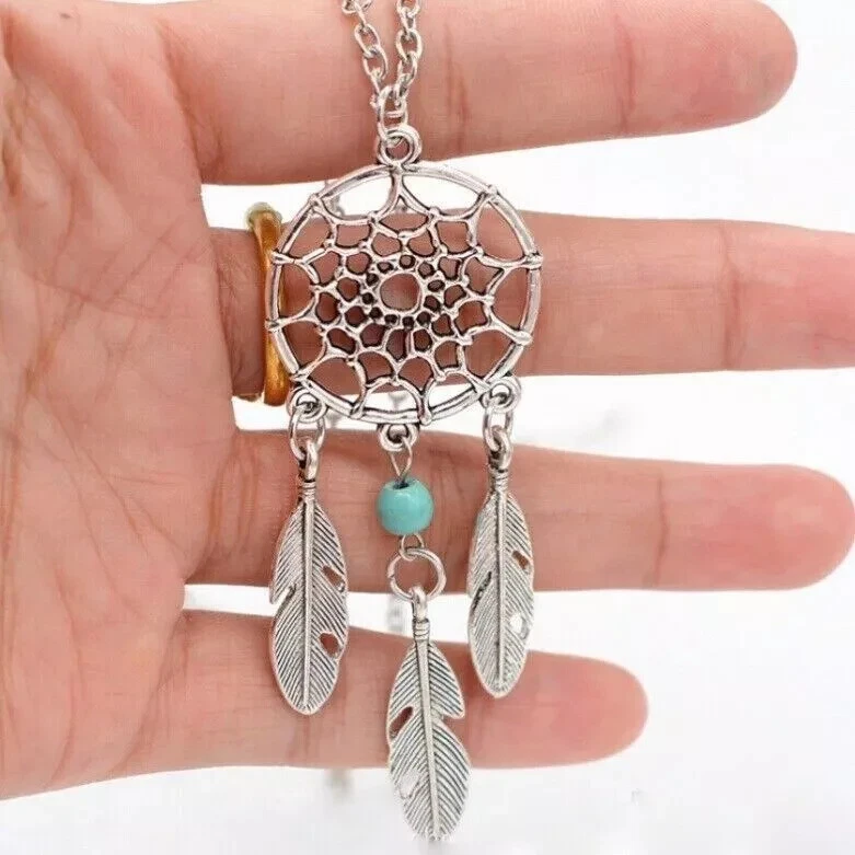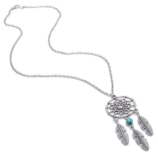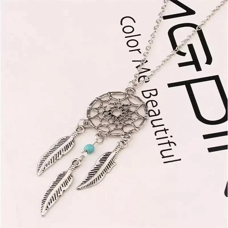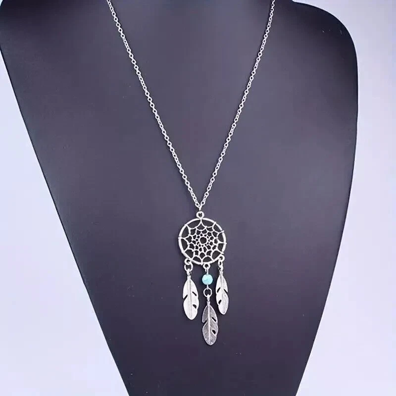 Dream Catcher Pendant Necklace Long Metal Tassel Feather Vintage Women Bohemia Silver Fashion Jewelry Gift Bijoux 100% Brand New and High Quality Material: Alloy Color: Silver Plated Size:45+5cm Quantity: 1 Piece Packing: OPP package