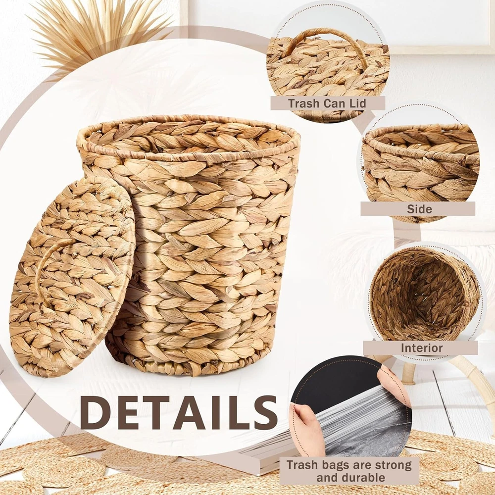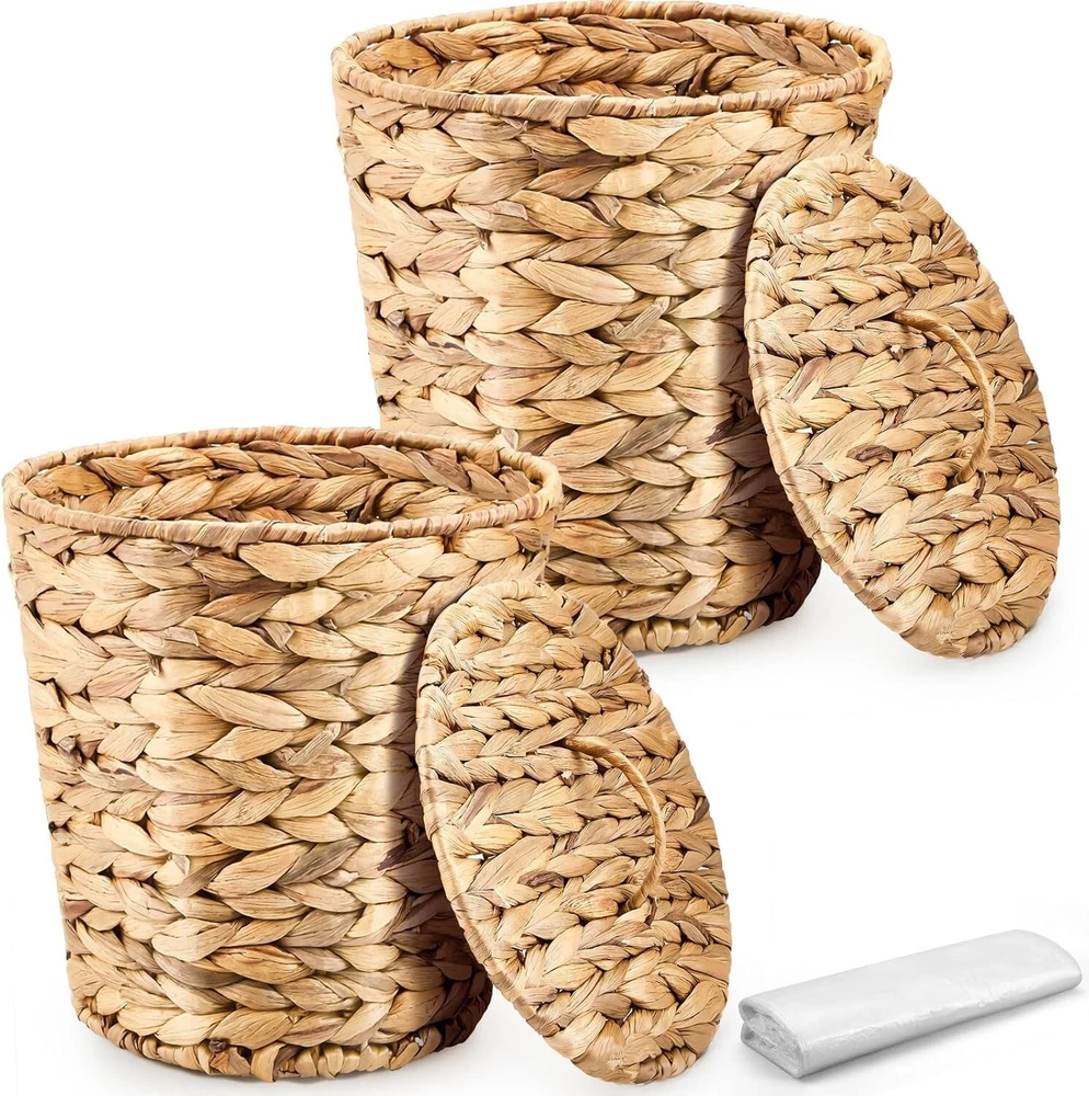 Elegante juego de 2 botes de basura de mimbre con 100 bolsas de basura - Elegante solución de residuos