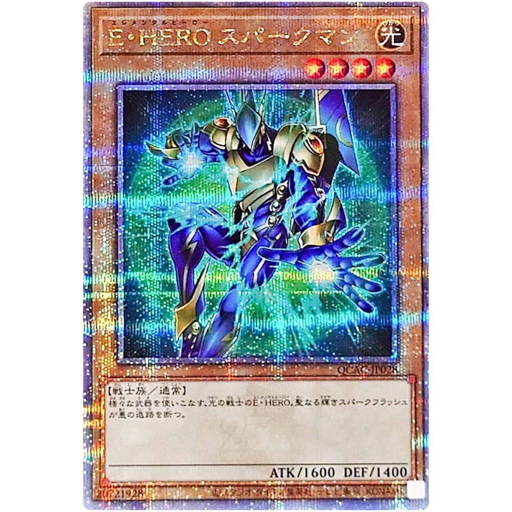 Card Type: Normal Monster Country/Region of Manufacture: Japan Age Level: 6+ Card Condition: Near Mint or Better Vintage: No Set: Quarter Century Art Collection Graded: No Card Size: Japanese Card Name: Elemental HERO Sparkman Material: Paper Manufacturer: Konami Game: Yu-Gi-Oh! TCG California Prop 65 Warning: No Problem Rarity: Quarter Century Secret Rare Finish: Foil Custom Bundle: No Card Number: QCAC-JP028 Character: Elemental HERO Sparkman Language: Japanese Autographed: No