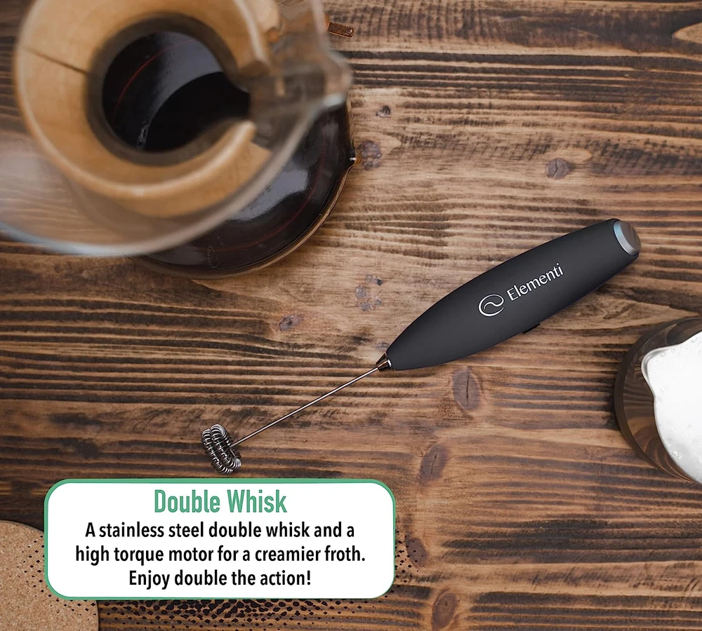 Store New Arrivals Add to Favorite View Feedback Contact Elementi Milk Frother Wand with Double Whisk - Coffee Frother Electric Stirrer - Matcha Whisk & Drink Mixer Handheld - Hand Held Milk Frother & Electric Whisk for Coffee (Black) Description Item model number MF-NOSTNDDBLWSK-BLK Style Electric Power Source Battery Powered Color Black Brand Elementi Material Stainless Steel Country of Origin China Item Weight 2.89 ounces Model Name MF-NOSTNDDBLWSK-BLK Recommended Uses For Product Mixer Number of Batteries 2 Included Components Stainless Steel Whisk Special Feature Ergonomic Handle Package Dimensions 9.29 x 2.17 x 1.65 inches Product Care Instructions Hand Wash Only Manufacturer Elementi PERFECT FOAM EVERY TIME: With the specially crafted double whisk, this handheld frother creates the ideal foam for your favorite beverages. WORKS IN UNDER 30 SECONDS: Enjoy rich and creamy froth in seconds with handheld milk frother. This compact and portable device is easy to use and clean, making it perfect for everyday use. ELEVATE YOUR COFFEE EXPERIENCE: With our electric whisk for coffee, you can enjoy café quality drinks in the comfort of your home. Easily craft cappuccinos, macchiatos and more with this convenient and versatile handheld frother. MORE THAN COFFEE: Make matcha tea, powder mixes, protein powder and more. We’ve spent hours testing and honing to ensure you can use the Elementi frother for nearly anything. NO-HASSLE QUALITY GUARANTEE: We guarantee the highest quality of our double milk frother and offer a money-back or replacement guarantee in case of any problems with the product. You can confidently buy with full confidence in its quality and performance. Product Description Elementi Milk Frothers 1 Powerful Motor 2 Double Whisk 3 Versatile Cappuccino In under 30 seconds, you'll have a thick, creamy foam that can be used to make lattes, cappuccinos, macchiatos and so much more. Matcha Tea Coffee not your thing? Use the Elementi Milk Frother to make matcha tea in seconds without the work of a bamboo whisk. Hot Chocolate And for the kids (or, let's be real, for yourself) you can even make whipped hot chocolate! Bulletproof Coffee Great for bulletproof coffee! Just add coffee to melted butter and whisk for 30 seconds to enjoy a smooth blend. Compare Elementi Milk Frothers Stainless Steel Whisk ✔ ✔ ✔ ✔ ✔ ✔ Stand ✘ ✔ ✘ ✘ ✔ ✔ Stainless Steel Whisk Stainless Steel Double Whisk Stainless Steel Single Whisk Stainless Steel Single Whisk Stainless Steel Single Whisk Stainless Steel Double Whisk Stainless Steel Single Whisk Batteries Included ✘ ✘ ✘ ✘ ✔ ✔ Power Source 2 AA Batteries 2 AA Batteries 2 AA Batteries 2 AA Batteries 2 AA Batteries 2 AA Batteries Motor High Torque Motor High Torque Motor Extremely High Torque Motor High Torque Motor High Torque Motor High Torque Motor Operation Button Press and hold to operate Press and hold to operate Press once to turn on Press and hold to operate Press and hold to operate Press and hold to operate ABOUT US We offer the best prices around on high quality products. Our E-store includes media such as books, movies, music and games while offering electronics, toys, sporting apparel, clothing, tools, general home, garden items and more. SHIPPING We are always working hard to ensure your package arrives as soon as possible. Please understand that some factors like weather, high postal traffic, and the performance of shipping companies are outside of our control. We offer free shipping to the lower 48 states and ship within 2 business days of payment, usually sooner. We do not accept P.O. Boxes. Please provide a physical address. RETURNS We offer a 30-Day Return Policy on items which you are not completely satisfied with. You have the option for a full-refund or an exchange of the item. No returns are available on items shipped outside of the USA. PAYMENT We accept PayPal. CONTACT US This page content is yet to come Please ad us to your favorite seller and visit again later Thank You CUSTOMER SATISFACTION We try our very best to make sure every customer is completely satisfied. If there's a problem, message us! We're happy to help.
