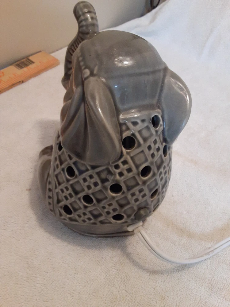 6 1/4" Elephant Light & Wax Warmer. Better Homes&Garden Grey/Green No chips or cracks, good condition