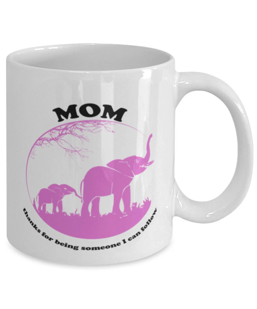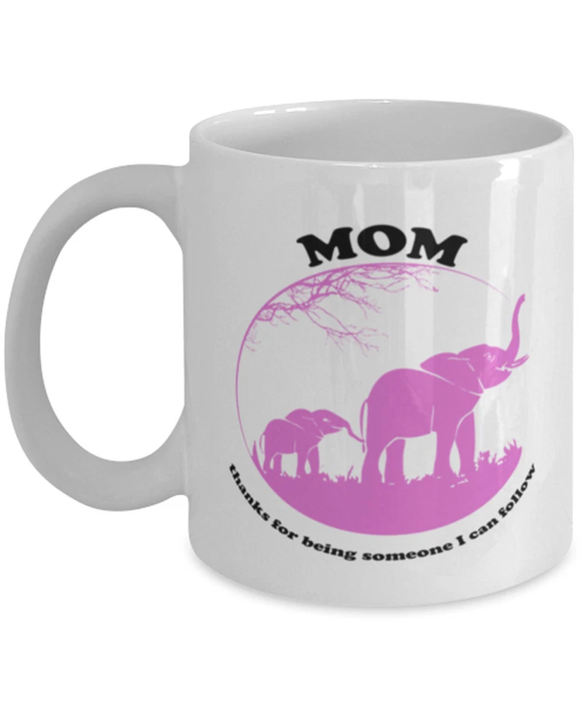 Elephant Mom Funny Coffee Mug Thanks For Being Someone I Can Follow Elephant Product Details.. This high quality 11oz. ceramic white mug has a premium hard coat that provides crisp and vibrant color reproduction sure to last for years. Perfect for all hot & cold beverages. The highest quality printing possible is used. It will never fade no matter how many times you wash it. Material: 100% Ceramic. Print both sides. Dishwasher and Microwave Safe. High Gloss + Premium White Finish. Printed in the U.S.A. Personalized & Custom. We support personalized and custom mug to add custom, when placing an order, you can add notes to the "order note" in shipping address section. Also you can contact us directly via message. Shipping Info. Ready to ship in 1 to 2 business days, All products are made-to-order and proudly printed in the United States. Shipped by USPS and DHL, You will receive your order in 5-7 days. Replace & Refund. All products are defective during shipping broken, chipped will be replaced free of charge. You are not satisfied with the product, we will refund 100% money to you. If any other issues arise, please do not hesitate to message, we would be more than happy to assist you.