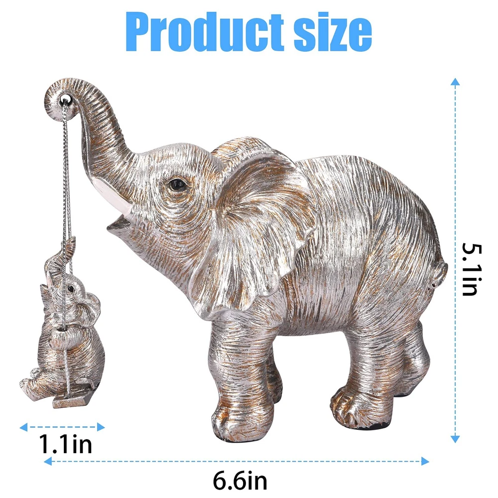 Handmade Elephant Decor: Made of premium resin, waterproof and durable. Hand-painted surfaces make this elephant statues more exquisite, skin details become more realistic. It is 7 inches long and 6 inches high. Width: 3.5 inches, it doesn’t look small An elephant takes the baby elephant on a swing happily. The elephant is considered a strong symbol of luck, wisdom, , and loyalty. It is adorable to display this elephant Statue in your home. CONTEMPORARY STYLE - Vintage Silver Elephant Statue Figurines. Sculptures Will Suit any Decor Style, Ideal For Home Decor, Room Decor, Kitchen Decor, Bathroom Decor, Bedroom Decor, Office Decor, Living Room Decor, Western Decor, House Decor. Just Place it On The Place You Like, Such As Bookshelf, Mantel, TV Cabinet, Nightstands, Table, Desk, Etc. PERFECT GIFTS FOR ALL — This Elephant Statue Animal Sculpture Craft is a perfect gift for any occasion such as birthday, Christmas, Mother's Day or Father's Day, Easter, Thanksgiving, weddings, Valentine's Day, New Year's, graduation, etc. It can be given to elephant lovers, animal lovers, lovers, husbands, wives, mothers, fathers, sons, daughters, etc.