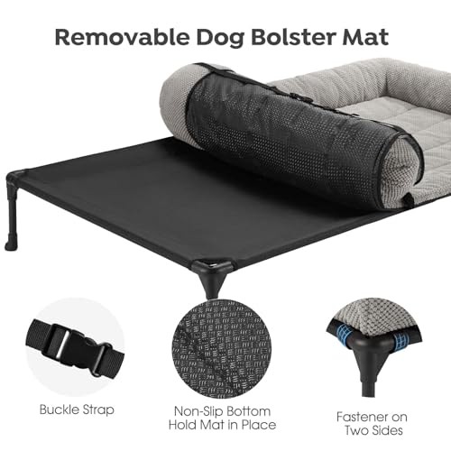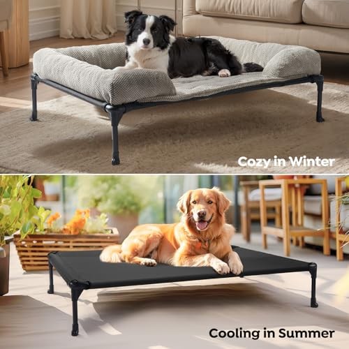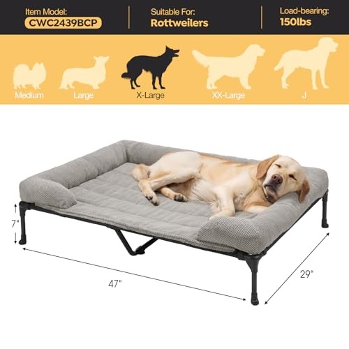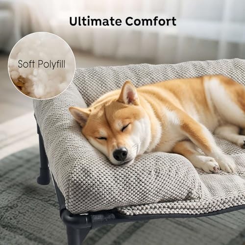 This elevated dog bed is a game-changer for big dogs! The sturdy frame supports up to 150 lbs, while the breathable mesh keeps my pup cool. The removable corduroy cushion adds extra comfort, and it’s easy to clean—just toss it in the wash. My German Shepherd loves stretching out on it, and the non-slip feet keep it secure. Fast shipping and a great return policy make this a worry-free purchase. Highly recommend for large breeds!