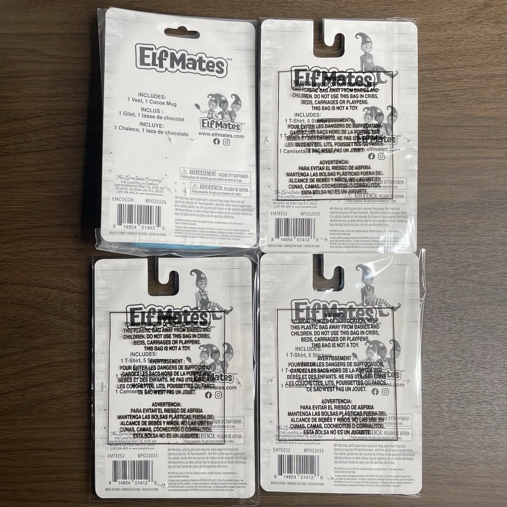4 shirt/clothing accessories for 11” Elf on the Shelf toy by ElfMates. All brand new. Please see pics.