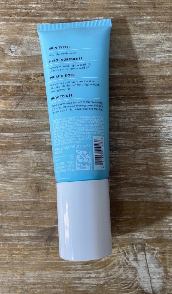 Main Purpose:MoisturizerCountry of Origin:USAItem model number:57016Skin Type:DryType:Not ApplicableAge Range (Description):AdultItem dimensions L x W x H:1.75 x 2.31 x 6.5 inchesEAN:0696537726041Special Feature:Lightweight, AntioxidantProduct Dimensions:1.75 x 2.31 x 6.5 inches; 2.65 ouncesUPC:696537726041Is Discontinued By Manufacturer:NoItem Volume:2.53 Fluid OuncesMPN:Not ApplicableUPC:609332570160gtin13:696537726041Features:HydratingManufacturer:e.l.f. CosmeticsBrand:E.l.f.