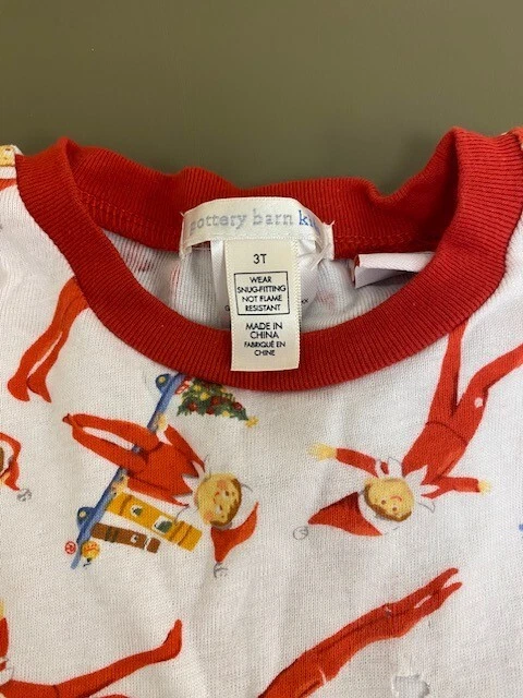 Get your little one ready for the holiday season with this adorable Elf on a Shelf pajama set from Pottery Barn. The set includes a cozy top and matching pants, both featuring a festive design with the iconic elf. Made from high-quality materials, this pajama set is perfect for keeping your toddler comfortable and stylish all night long.With a size of 3T, this pajama set is suitable for unisex babies and toddlers. The multicolor design and Christmas theme make it a great addition to any holiday wardrobe. Whether you're looking for a gift or just want to add some festive flair to your child's sleepwear, this Elf on a Shelf pajama set is sure to delight. Please note that, though new, there is a small hole in the top (see picture).