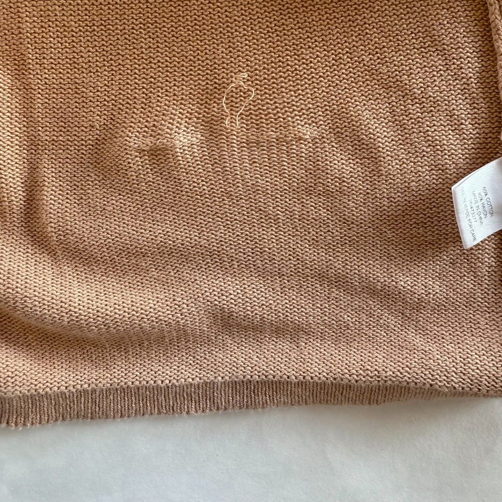 EUC - no stains, holes, or pilling. Small pull on the inside near the bottom, you don't notice it on the front (see photo). Overall in excellent condition. Lightweight knit cardigan sweater in a longer length. Relaxed fit. Deep v-neckline with button-front closure. Front pockets. Versatile camel color. 60% Cotton, 40% Rayon Sizing varies from brand to brand, please use measurements in photos to decide if this will fit. Unless otherwise specified, this is a preowned item with normal signs of wear. There is no notable damage or stains. Please see all photos for exact item condition. Wash to wear. Ships from a smoke-free home! Thanks for checking out my store! All items ordered before 10am PST ship same day. Orders received after 10am PST ship the next morning. Make a bundle to save on shipping costs.