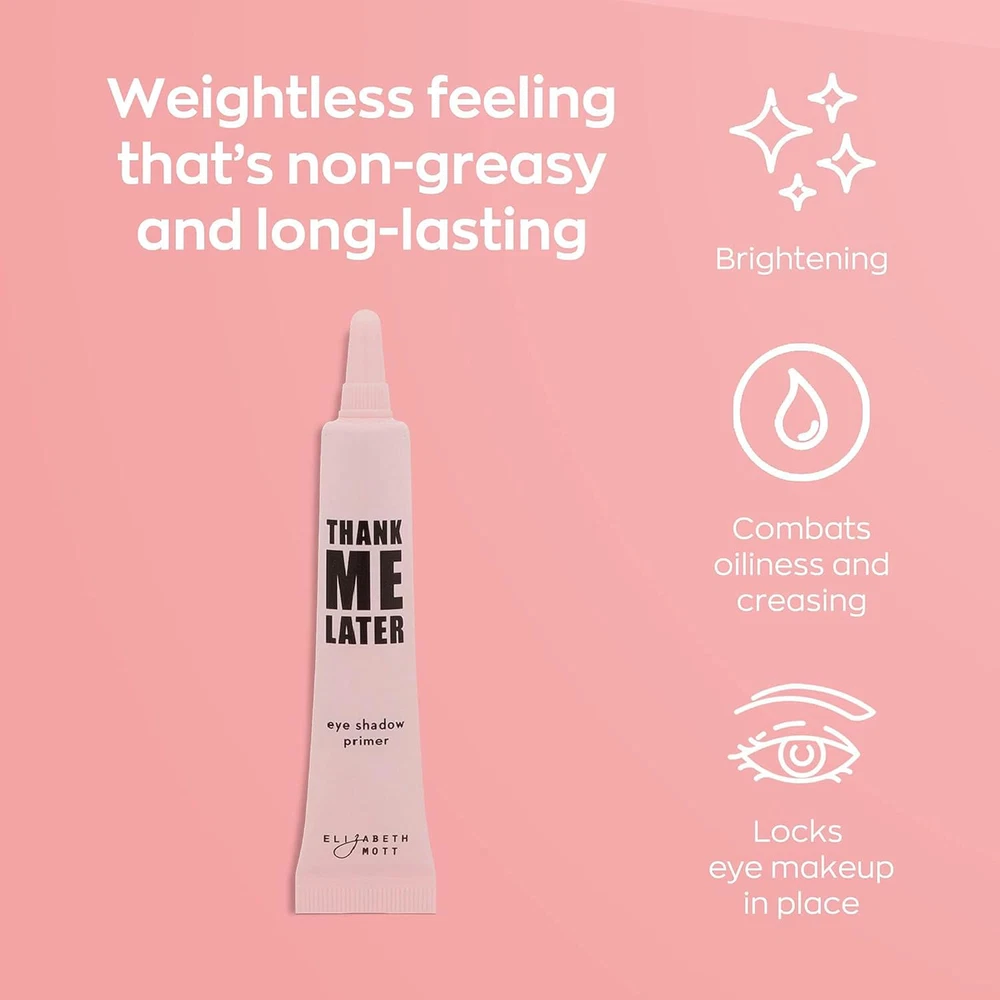 Elizabeth Mott - Thank Me Later Eye Primer for Long-Lasting Power Grip Makeup, & BEST OF KOREAN BEAUTY: We work with the finest Korean manufacturers to bring the best Korean skincare and beauty to you; infused with effective Korean ingredients and breakthrough formulas; cruelty-free, and Leaping Bunny approved FLAWLESS EYE MAKEUP BASE: Achieve flawless eye makeup with ease; our eye primer enhances eyeshadow pigment for bold, vibrant color; eliminates fallout; controls oil for all-day wear; perfect for mature skin; helps conceal fine lines; smoother application and seamless blend HOW TO USE FOR BEST RESULTS: Using our primer is a breeze for stunning results; apply a pea-sized amount of primer with your ring finger to clean, dry eyelids; wait 30 seconds for it to dry adequately; then apply your desired eye makeup LIGHTWEIGHT FORMULA: Crafted with high-quality ingredients including pearl powder; our eyeshadow primer offers a well-balanced, weightless, paraben-free, non-greasy formula; you will not need constant touch-ups and won’t feel heaviness around the eyes EYE PRIMER WITH SKIN BENEFITS: Our eye primer for mature skin does more than prep your lids; it enhances your skin; evens skin tone; enlivens complexion; conceals discoloration; balances skin; perfect for oily lids; protects against creasing; ensures flawless eye makeup all day long