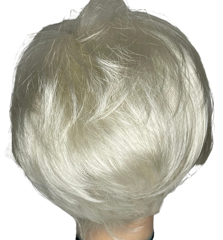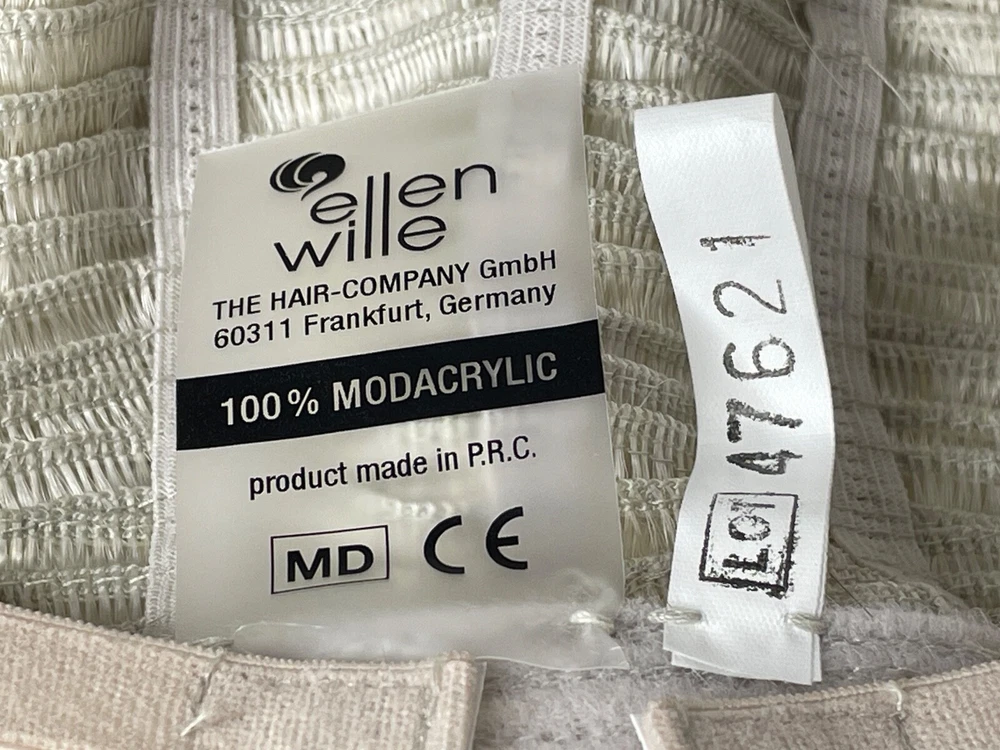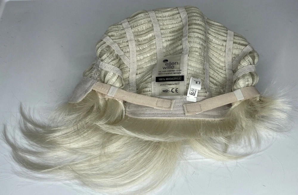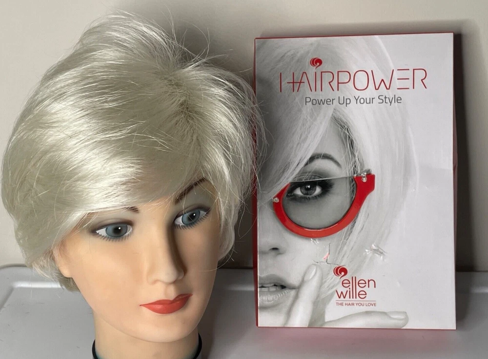 Ellen Wille Hairpower wig Synthetic Wefted Adjustable tabs in back Style = Disc Color = Platin Mix (platinum) Short layered style with sweeping bangs New with box & paperwork Will be shipped inside another box to protect original packaging We know it is difficult to find the right wig buying on the internet and you need to try it on to see how it looks and feels on YOU. We offer 30 day returns. Item must be returned in original condition, buyer pays shipping.