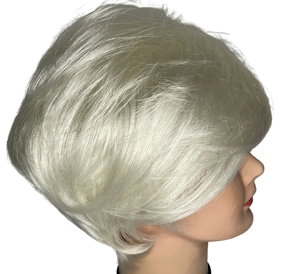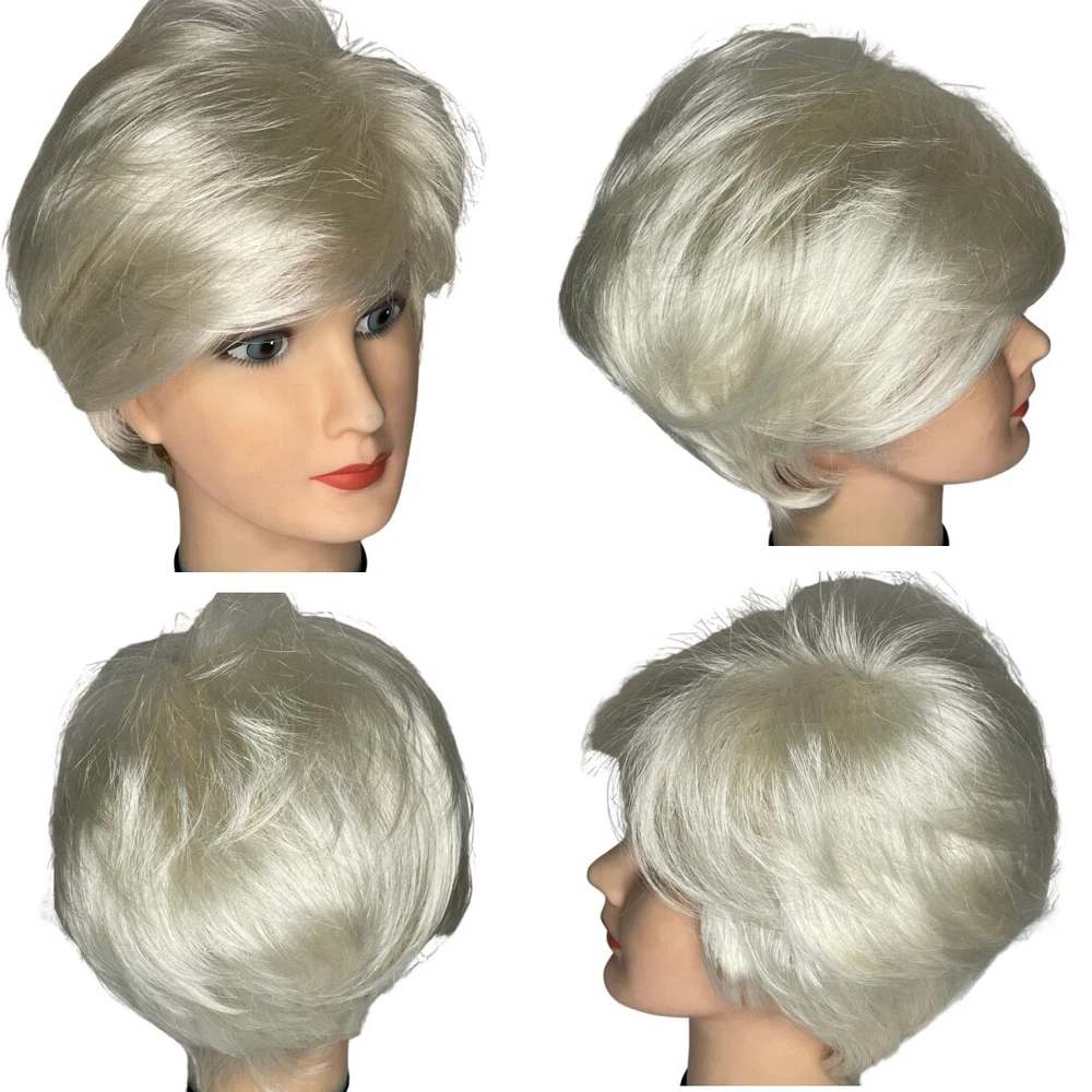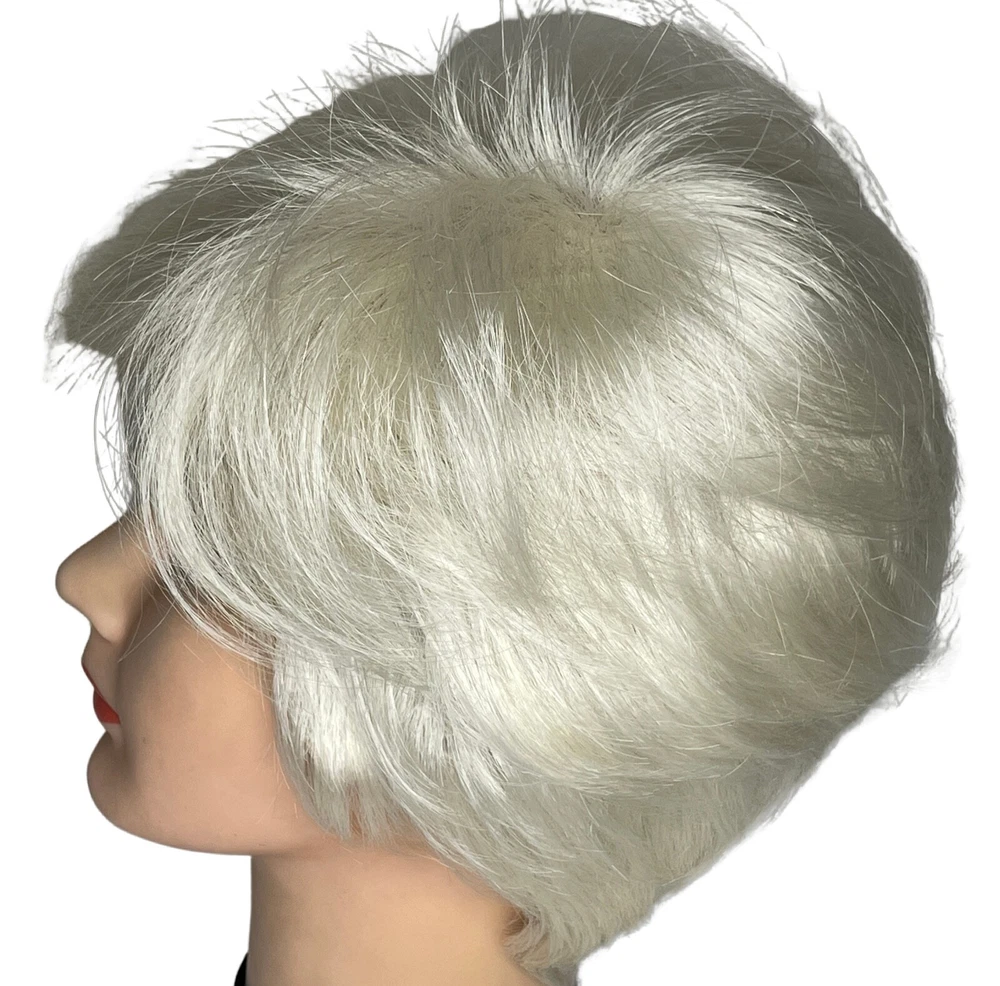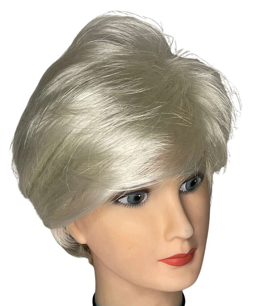 Ellen Wille Hairpower wig Synthetic Wefted Adjustable tabs in back Style = Disc Color = Platin Mix (platinum) Short layered style with sweeping bangs New with box & paperwork Will be shipped inside another box to protect original packaging We know it is difficult to find the right wig buying on the internet and you need to try it on to see how it looks and feels on YOU. We offer 30 day returns. Item must be returned in original condition, buyer pays shipping.