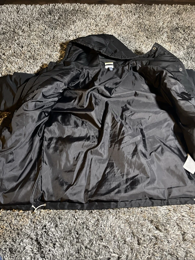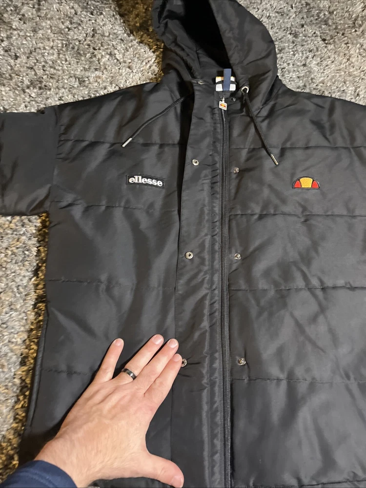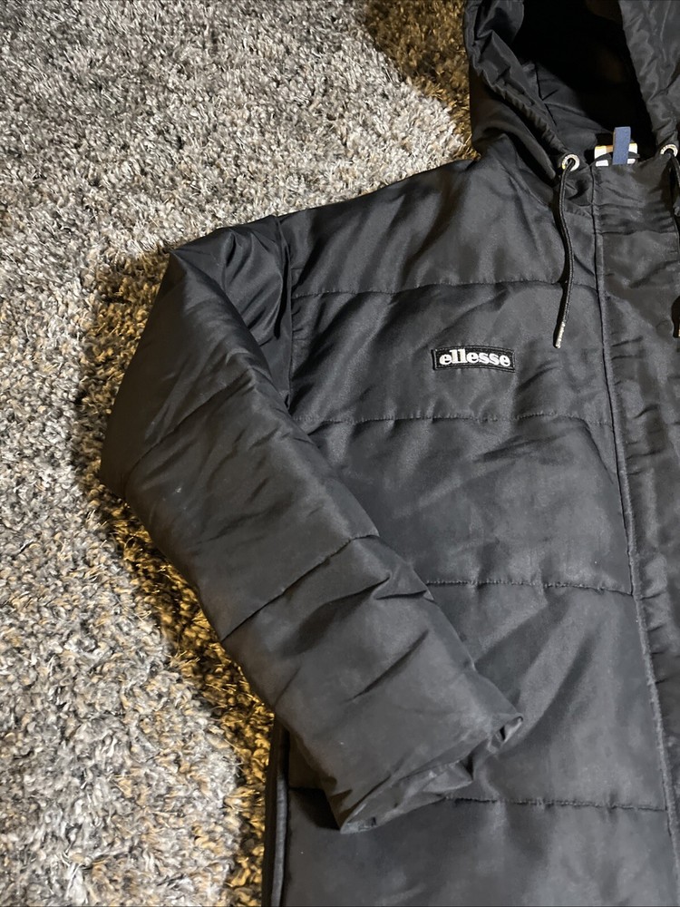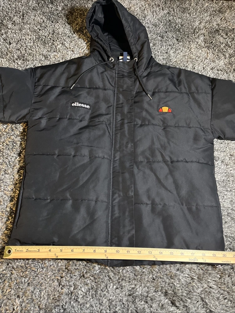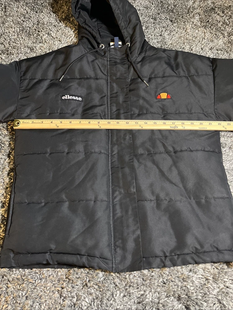 Stay warm and stylish with this black Ellesse Pejo puffer jacket. The jacket features a softshell fabric type with a polyester lining and insulation material, making it perfect for winter, summer, and spring. It has a mid-length jacket/coat length and long sleeves, with a regular fit that accommodates a size 2. This hooded jacket comes with both zip and snap closures, making it easy to wear and take off. It has a solid pattern with quilted accents and the Ellesse logo, giving it a designer and classic outdoor look. The jacket is machine washable, making it easy to maintain. Ideal for travel and casual occasions, this Ellesse Pejo jacket is a perfect addition to your wardrobe.