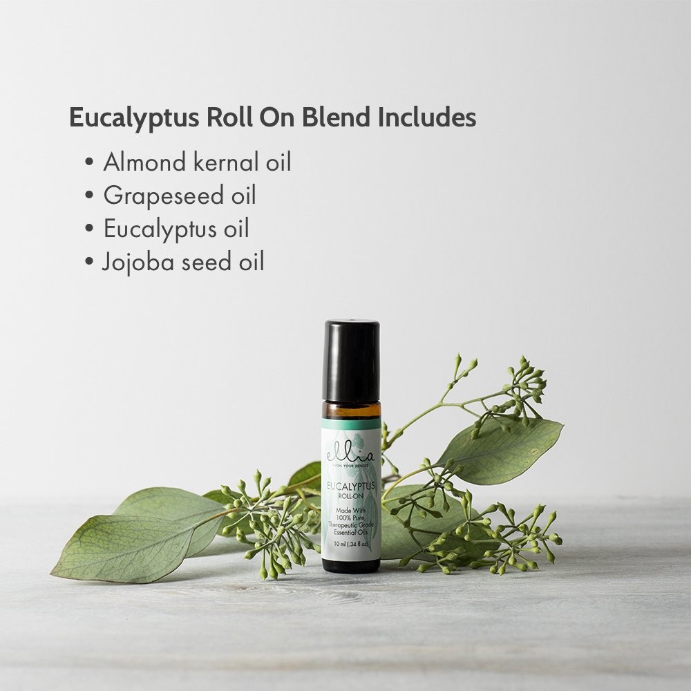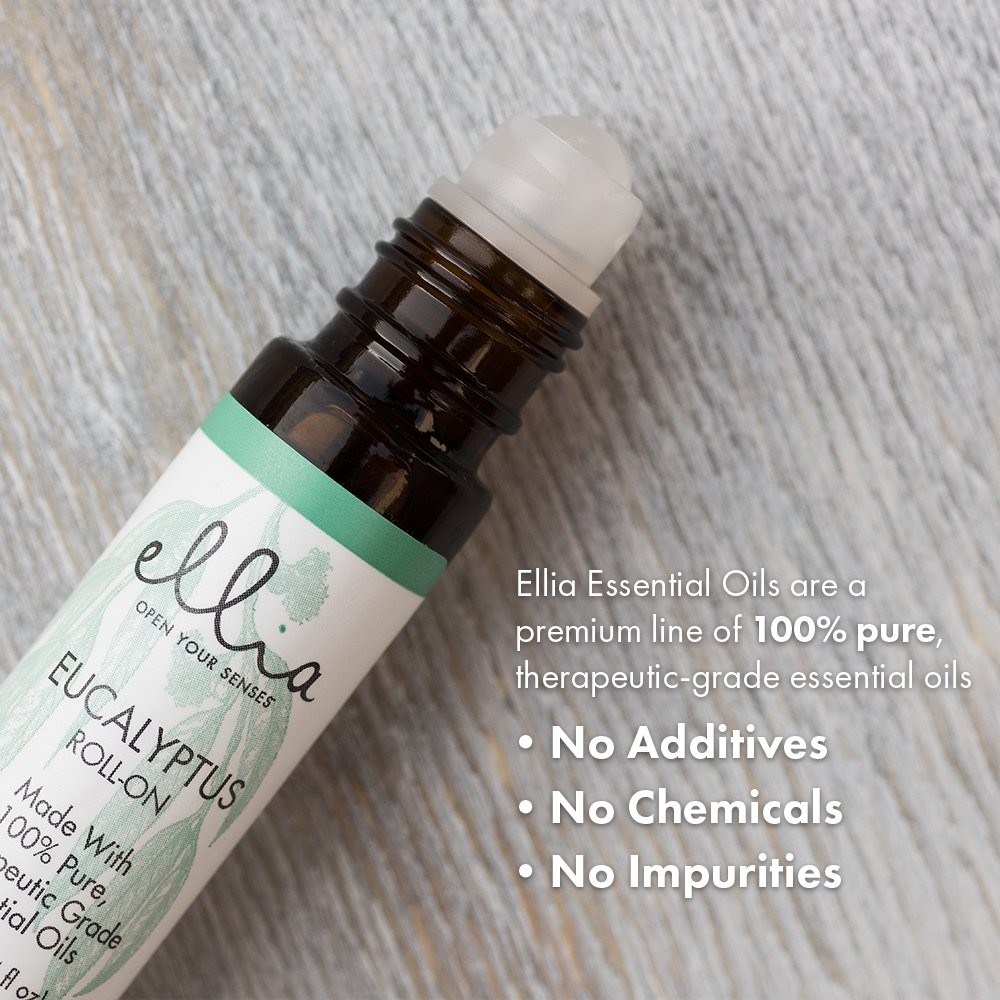 BREATHE IN: A minty, pine scent with a hint of honey. Lightly musky with a sweet undertone Eucalyptus introduces a fresh, heavenly scent to any space PRIMARY BENEFITS: Inspire a space that's calming and cleansing so you feel refreshed and invigorated. Perfect for de-stressing and relaxation with a woodsy and warming effect BEAUTIFULLY BLENDED: Ellia uses only the highest quality of 100% Therapeutic Grade Essential Oils in every blend. Each scent attributes a unique therapeutic quality guaranteeing you a beneficial experience BOTTLED EXCLUSIVELY: All of our essential oils are bottled with care exclusively in the USA. To protect its most precious qualities, it’s sealed in dark violet or amber glass WHAT'S IN THE BOX: (1) 10mL Eucalyptus Essential Oil Roll On