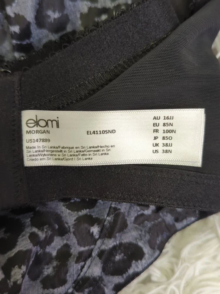 Elomi Morgan Stretch Lace-Trimmed Animal Print Full-Busted Contour U-Back Underwire Bra $72.00 From Elomi, this bra features: stretch lace trim 3-section contour cups with underwire support Elastic neck edge for ease of fit fully-adjustable straps Side panel for support and shape built-up mesh wings leotard back hook-and-eye back closure 3 rows of hooks nylon/polyamide/spandex/polyester hand wash