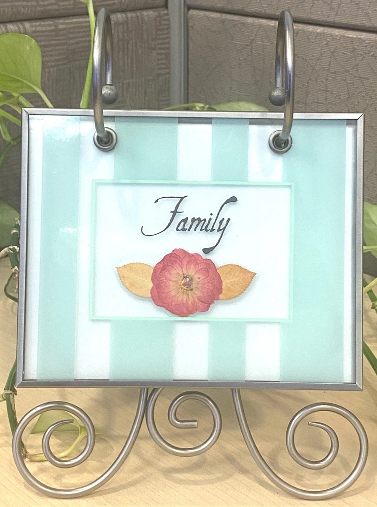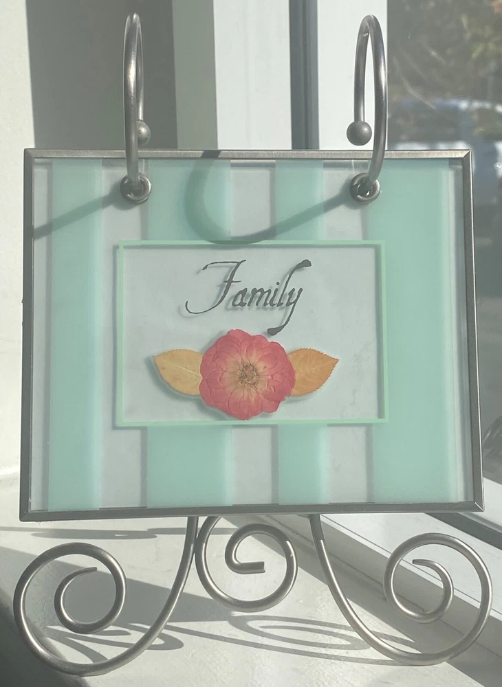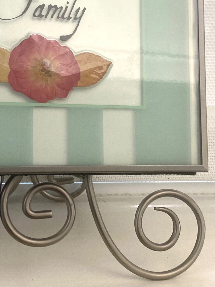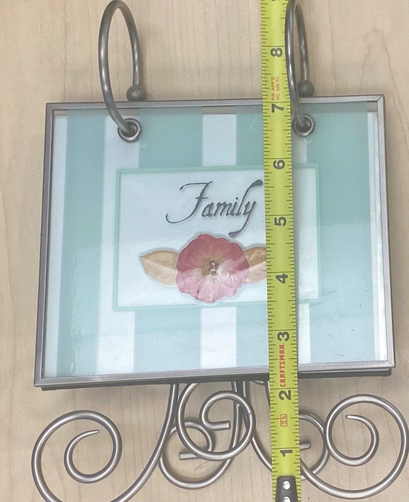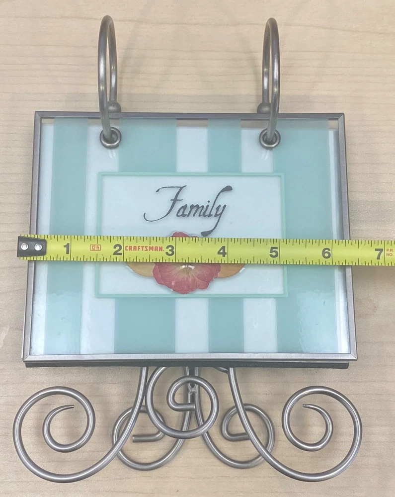 Elevate your cherished memories with the Elsa L 30 Photo Flip Photo Album. Designed to hold 30 of your favorite 4 x 6 inch photos, this modern photo album features a unique side-loading insertion type that makes adding pictures quick and easy. Its sleek silver and aqua/sea foam color scheme, adorned with a delicate dried rose pattern, provides a stylish way to showcase your family's moments. The album is free-standing with an included easel stand, allowing for convenient display on any surface. With interior dimensions of 5 x 6 inches and an overall height of 9 inches, it's the perfect size for adorning your bookshelf or desktop. Whether for special occasions or everyday memories, this photo album is a thoughtful way to keep your memories close. As this frame is used, it may contain minor imperfections, please check the photos carefully.