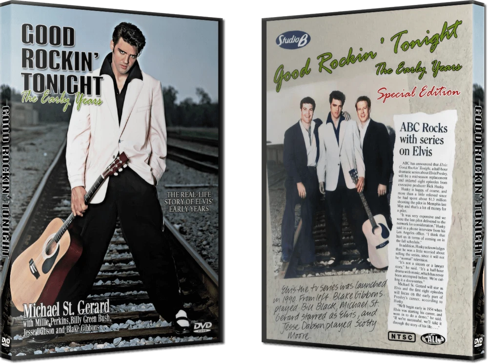 This DVD is both Region Free (For all countries - No code restriction) and NTSC suitable for the USA Elvis Presley Official Fan Club | ElvisPresleyShop.com www.elvis.com.au www.elvispresleyshop.com Elvis: Good Rockin' Tonight mini-series Special Edition 2 DVD Set (Elvis Presley) Elvis: Good Rockin' Tonight mini-series (From 1990) DVD. New release June 2023, perfect quality!!! Region Free (0) NTSC Review: Elvis: Good Rockin' Tonight mini-series (From 1990) DVD Previously we had to make do with a VHS transfer, well no longer, this new release is now PERFECT and most definitely something every fan can now enjoy!!! A favorite show of mine growing up, and one that I have always wished would come out on DVD, is the short-lived 1990 ABC series Elvis-Good Rockin' Tonight. It only lasted for 10 episodes with three unaired episodes, and was later edited into one long, (4 hours) film 'Elvis: The Early Years'. It follows a young Elvis from his days in Tupelo to the end of his days at Sun Records. The series starred Michael St Gerard, Jesse Dabson, Blake Gibbons, and Millie Perkins. I always hear people say 'well, they've made 'Walk The Line', and 'Ray' why has there never been a production on par with those two for Elvis? Well, there has! I've just received this new DVD of the series and I'd like to review all 13 episodes. First, a little background: The series was pitched in 1988 by Rick Husky to Pricilla Presley. Originally considered for the role of Elvis was Matt Dillon and Scott Valentine of 'Family Ties'. Then Michael St. Gerard, fresh off of 'Hairspray' and 'Great Balls Of Fire' (in which he played Elvis), came in. lip-synced to Baby Let's Play House , got the part, and flew to Memphis the next day to start filming. Michael St Gerard made a career of playing Elvis ::: 'Great Balls of Fire', 'Quantum Leap', 'Heart Of Dixie' - he looks so much like him it gives you that 'fly on a wall' view on Elvis' life, much like Jamie Fox did as Ray Charles. Instead of using Elvis' masters for the soundtrack they used famed sound-alike Ronnie McDowell. This is one of my favorite parts of the series as you hear a few songs Elvis never actually recorded but might of played live. Songs like Ray Charles' Mess Around, and Ivory Joe Hunter's Since I Met You Baby give you the impression of a young Elvis putting together a live act in the early days considering he only had one or two records out. One last this before I get into the episodes, an interesting casting choice was made for Elvis' mother Gladys, Millie Perkins who was the real Elvis' love interest in the 1961 film 'Wild In The Country'. Episode Reviews 1) Money Honey: In the first episode Elvis records his first demo 'My Happiness'. His father hurts his back and forces Elvis to support the family, a year has past and Sam Phillips calls to have Elvis come back into Sun Records, and work with some musicians Scotty Moore & Bill Black. This is a good place to open the series, we get a small intro in which we see Elvis as a child watching his father get arrested for altering a paycheck. It gives you a sense of the extreme poverty that was much of Elvis' early life. 2) The Storm: This episode opens with another flashback of young Elvis, this time witnessing the tornado that devastated Tupelo in the late 30's. we then clip to Elvis trying out a few songs at Sun Records which leads to the recording of his first record 'That's All Right Mama'. By the end of the episode the record gets played on the air and Elvis' life is about to change. I like the symbolism in this episode starting with the tornado, and ending with Elvis saying to his mother after the record is a success, 'There's a storm coming, Mama'. Very simple, but perfect. 3) The Locket: Again we begin with a flashback. While this does happen quite a bit, every episode is related in way to show an event in Elvis' childhood having an effect on him in later years. Here we see Gladys and child Elvis visiting Vernon in prison, and we see that Gladys is there for a conjugal visit. It means the episode will be based around sex. Here we have Elvis performing his very first show. He opens with a ballad, and then tears into 'Good Rockin' Tonight' shaking his hips, driving the crowd wild. His girlfriend fearing all the attention gives him a locket. Elvis then goes on the road where he sleeps with a groupie. This episode is great for the music, the rerecording of Elvis' hits sound great here, and the song 'Since I Met You Baby' sounds great arranged as an early Sun-era Elvis ballad. 4) Bel-Air Breakdown: The first episode without a flashback, and an interesting take on Elvis' early fame. The episode revolves around the troubles three guys have touring the country as the first rock & roll group. What I love about this show is that what is usually considered minor characters in an Elvis biopic, are here considered major characters. I'm talking here of course about Scotty Moore & Bill Black Elvis' sidemen. 5) Hole In The Pocket: We open, again, with a flashback of Elvis at ten years old taking third place in a singing contest at a state fair. We then clip to the main story. This one revolves around Elvis getting his first royalty check and spending it on the, now famous, pink Cadillac. One highlight of this show is when they introduce the caddy they clip back and forth between shots of Elvis driving it to a very cool vintage Cadillac commercial which perfectly shows the excitement that was a 1950's Caddy! 6) Roots: The first of my three favorite episodes. When asked what era of Elvis do you like, people say the 50's, 60's or 70's. For me, it's his formative years, and that's what this one is about. There's something poetic about the image of a young Elvis learning about the blues. Here Elvis & the boys get a show in Tupelo. Elvis meets up with old friends and sits in a all-black blues club after his show at the local white high school. Now this may not have happened, but it doesn't matter it successfully portrays the neg