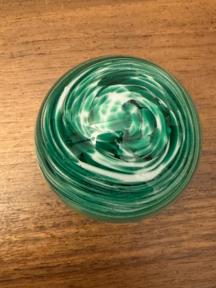 Elwood Art Glass Handmade Paperweight Green-White Swirl in Clear