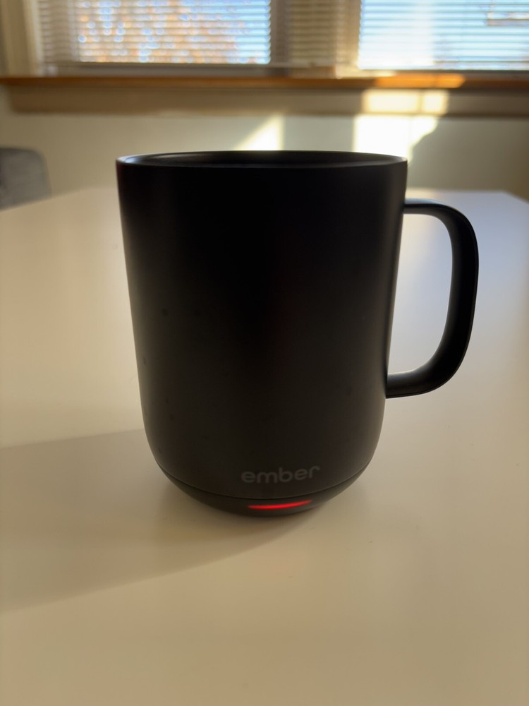 The Ember Temperature Control Smart Mug is a modern and innovative coffee mug designed for all occasions. It features a sleek round shape in black color, made from stainless steel and ceramic material with a 10 fl oz capacity. This app-controlled heated coffee mug has auto sleep and heat-changing features, along with being reusable and BPA free. The mug is equipped with LED lights and should not be microwaved or soaked in water. This smart mug is perfect for enjoying hot beverages while maintaining the desired temperature.