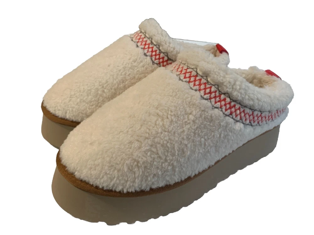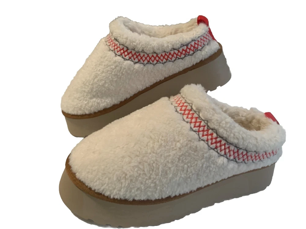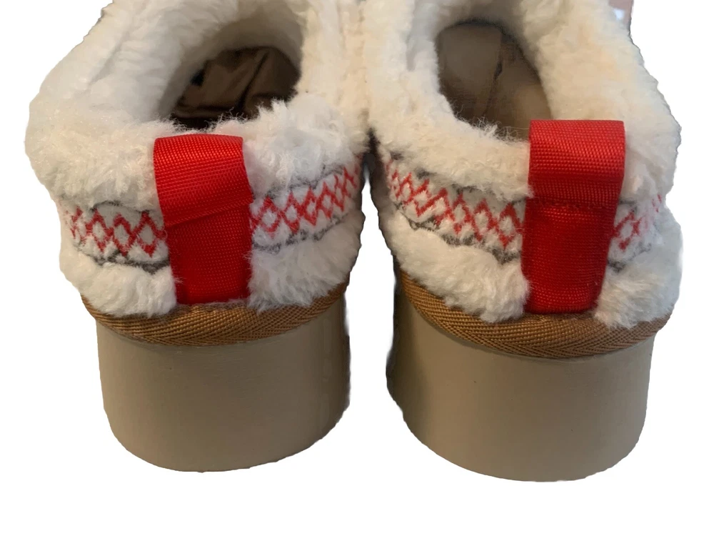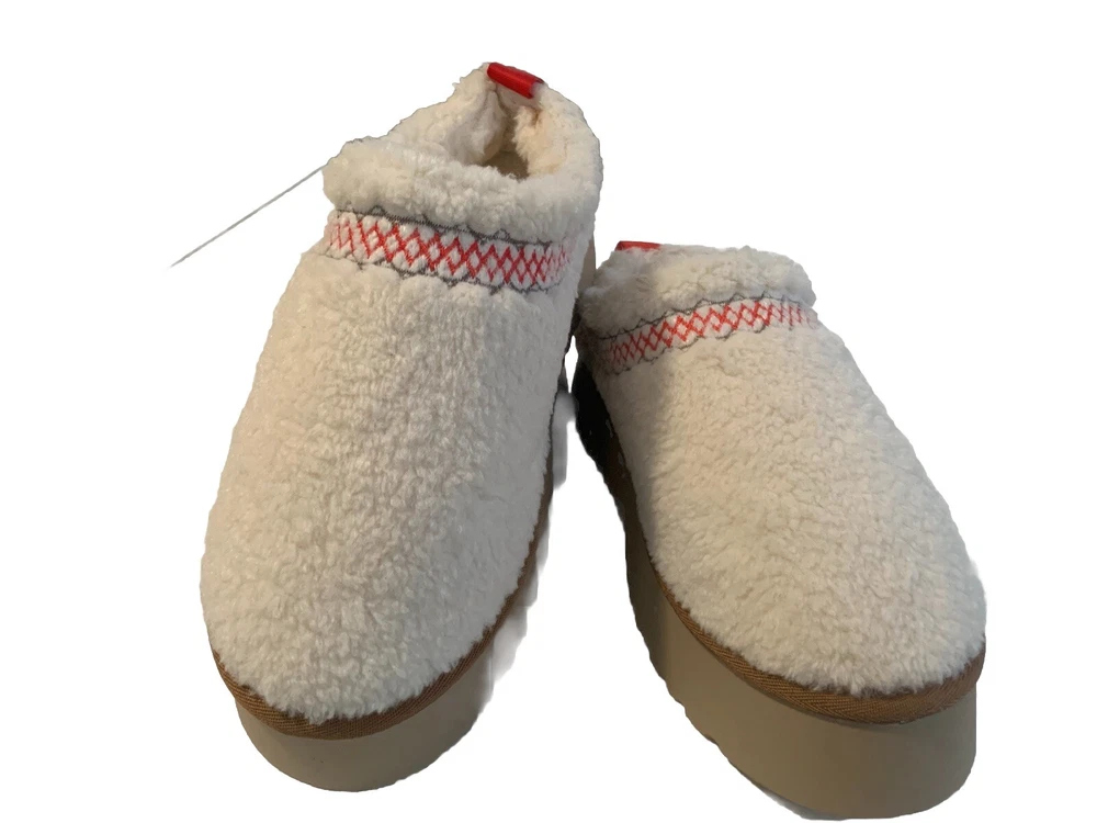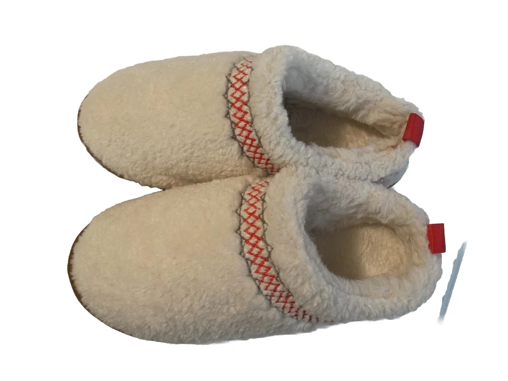 Sherpa Clog Style Slipper Size: 7 / 8 Features & Accents: White, Sherpa lined, Embroidered with Red gives it a festive look, Easy Slip in there Condition. New, No Box or Tag. Never Worn. Smoke Free Home. Same day shipping if purchased by 3:00 PM, EST. International Sales Ship through Ebay International Shipping Program. Free Returns. We truly try to disclose all information on items we list. However if we miss something, please contact us before leaving negative feedback and allow us to resolve the problem or issue a returns. Your choice. Thank you.